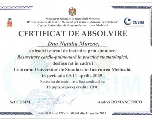 - 2025 – Сердечно-лёгочная реанимация в стоматологической практике, проведённая в Университетском центре симуляционного обучения в медицине