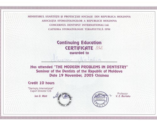 - 2005 – Современные проблемы в стоматологии (10 часов)
