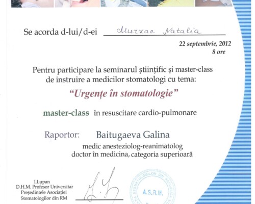 - 2002 – Курс по пародонтологии (8 часов)