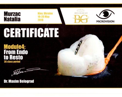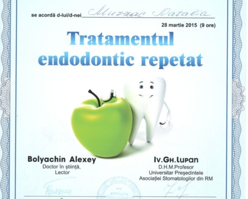 - 2015 – Повторное эндодонтическое лечение (99 часов)