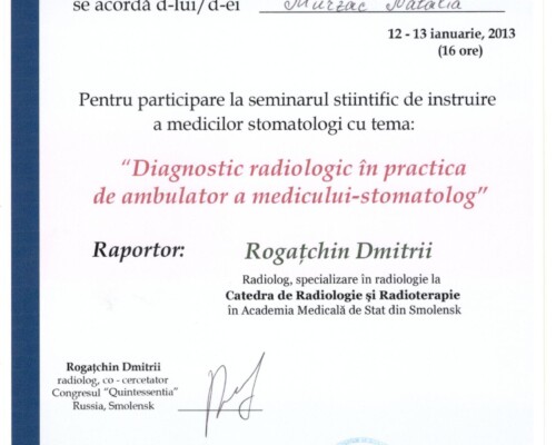 - 2007 – Современные методы диагностики и лечения пародонтальных патологий (8 часов), 20 октября – Актуальные проблемы в стоматологии