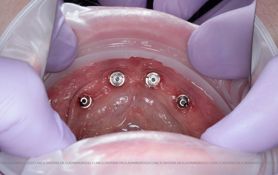 Această metodă este recomandată pacienților edentați total sau celor cu lipsuri dentare multiple. Procedura se realizează într-o singură etapă, iar pacientul primește proteza provizorie în ziua următoare intervenției. De regulă, proteza provizorie este realizată din masă plastică frezată. Suturile se îndepărtează după 5-7 zile.