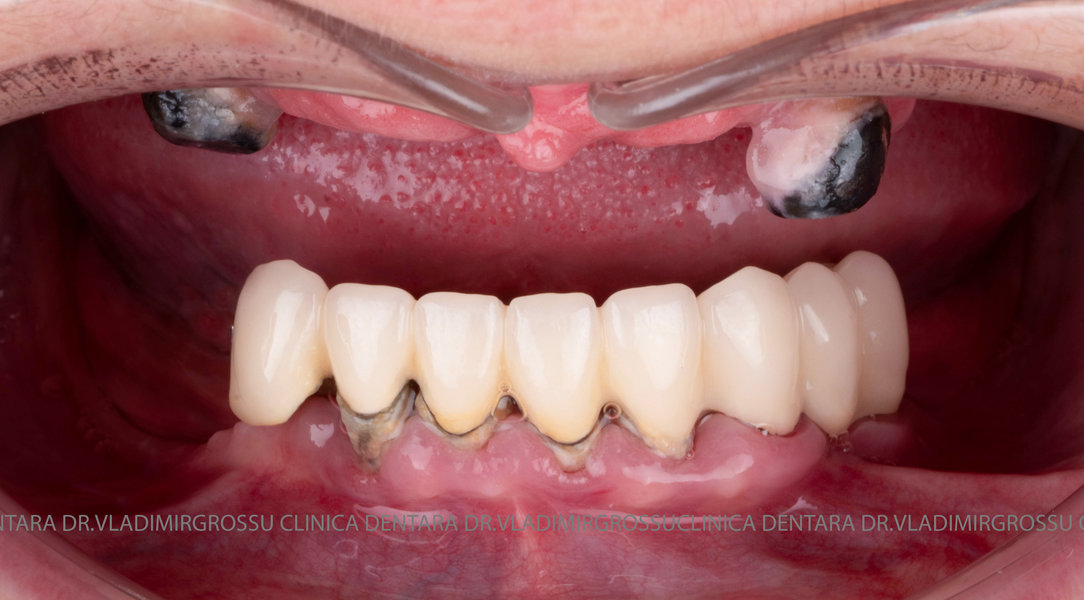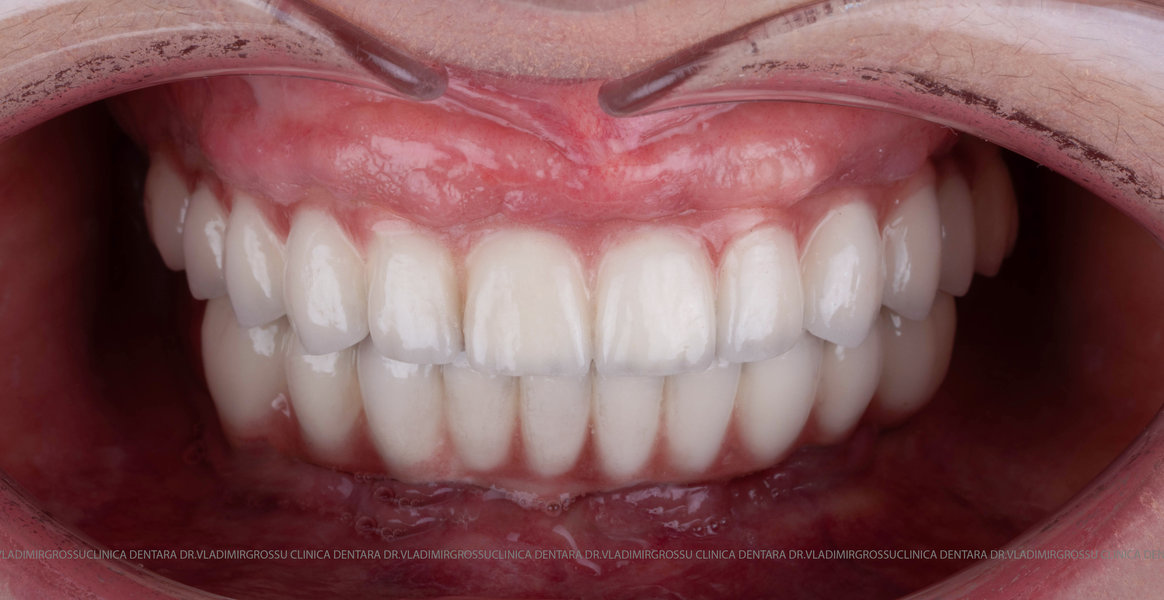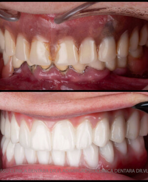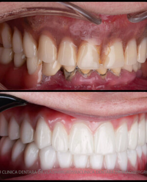- Proteză definitivă din metaloceramică sau zirconiu pe o structură metalică, cu 12 unități (soluția recomandată).