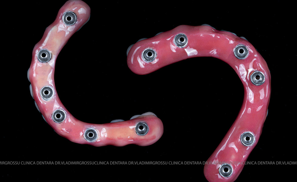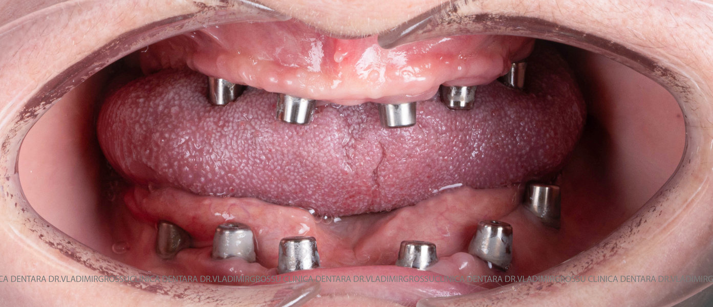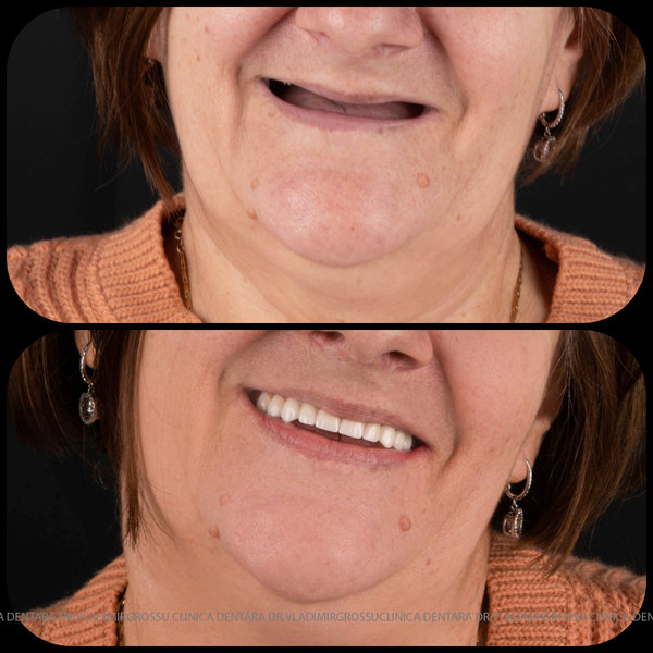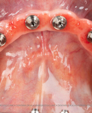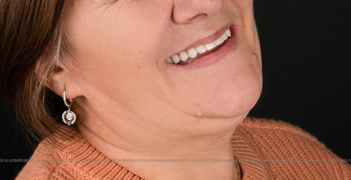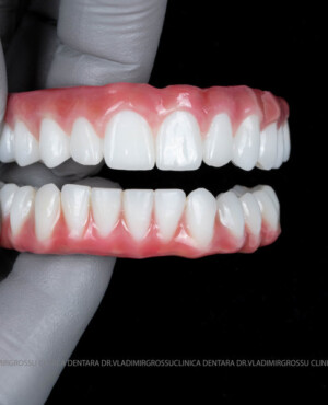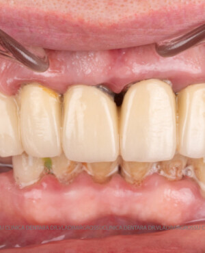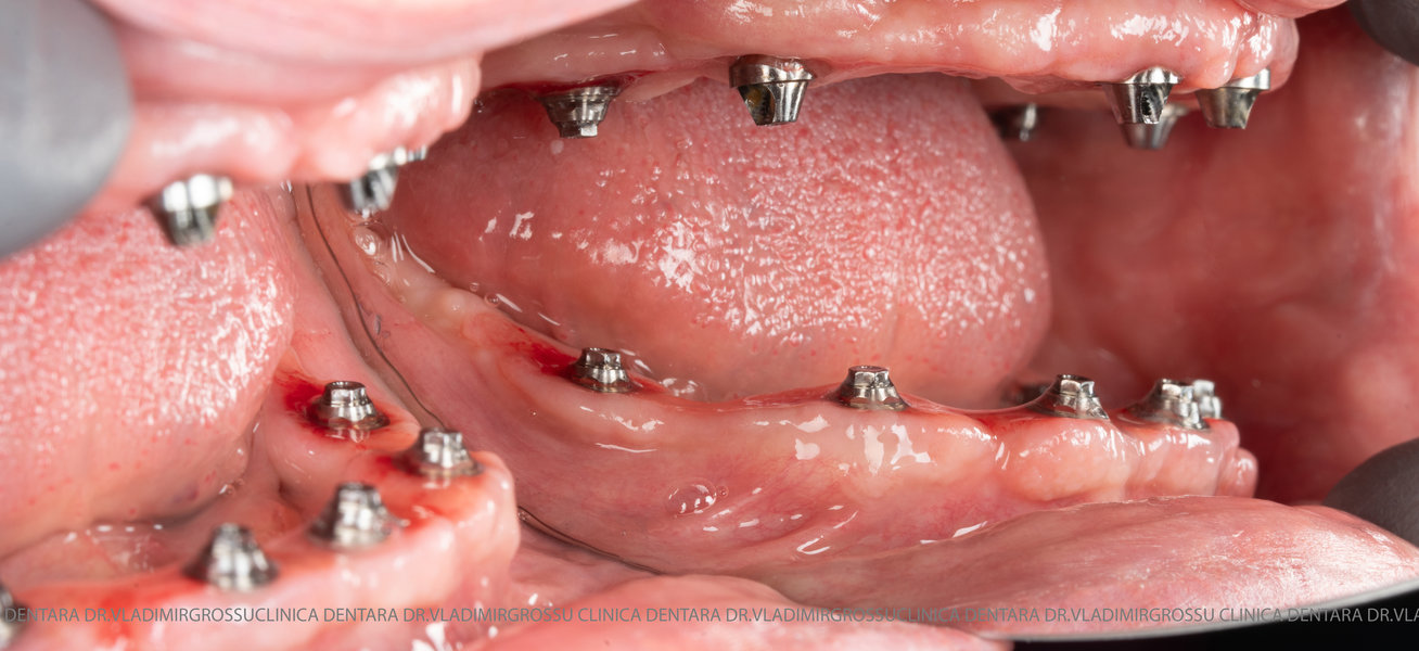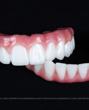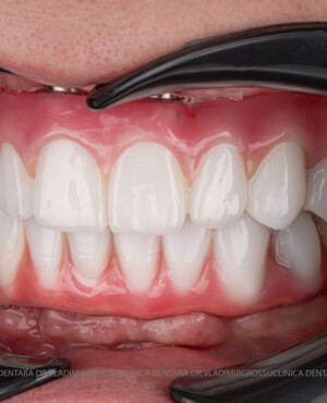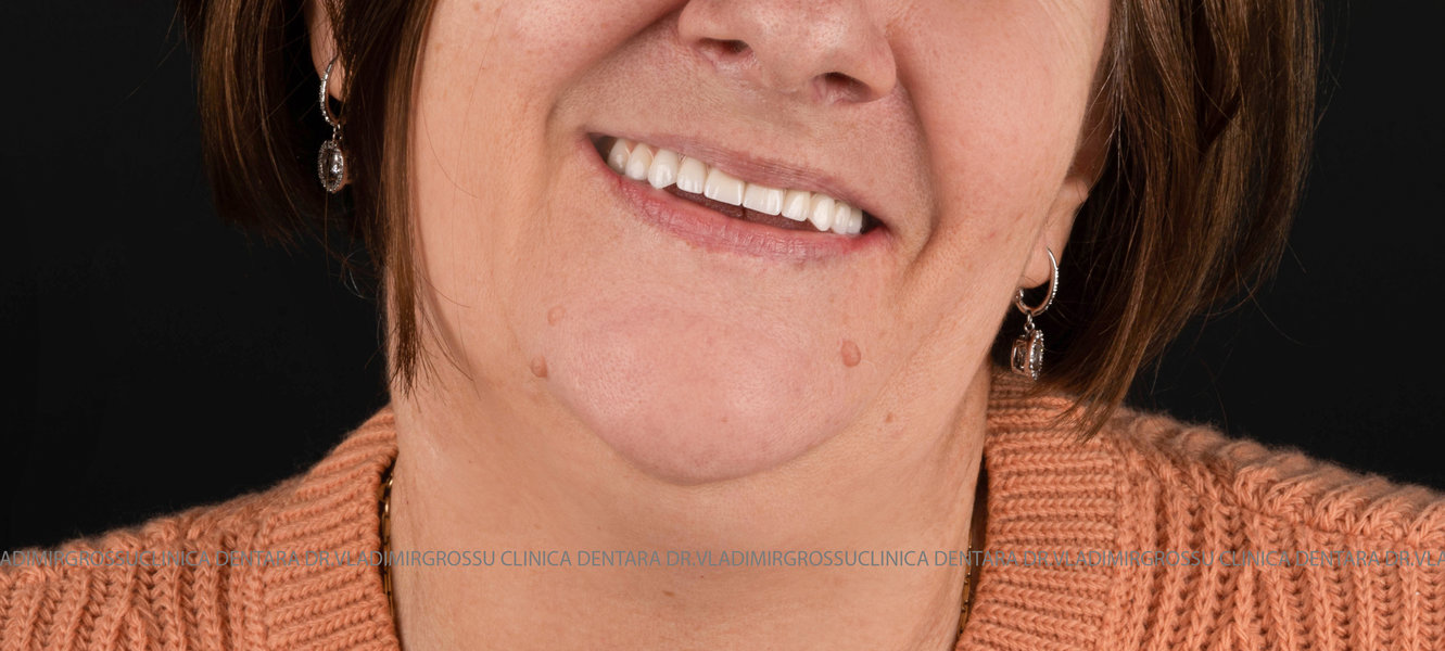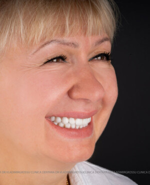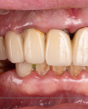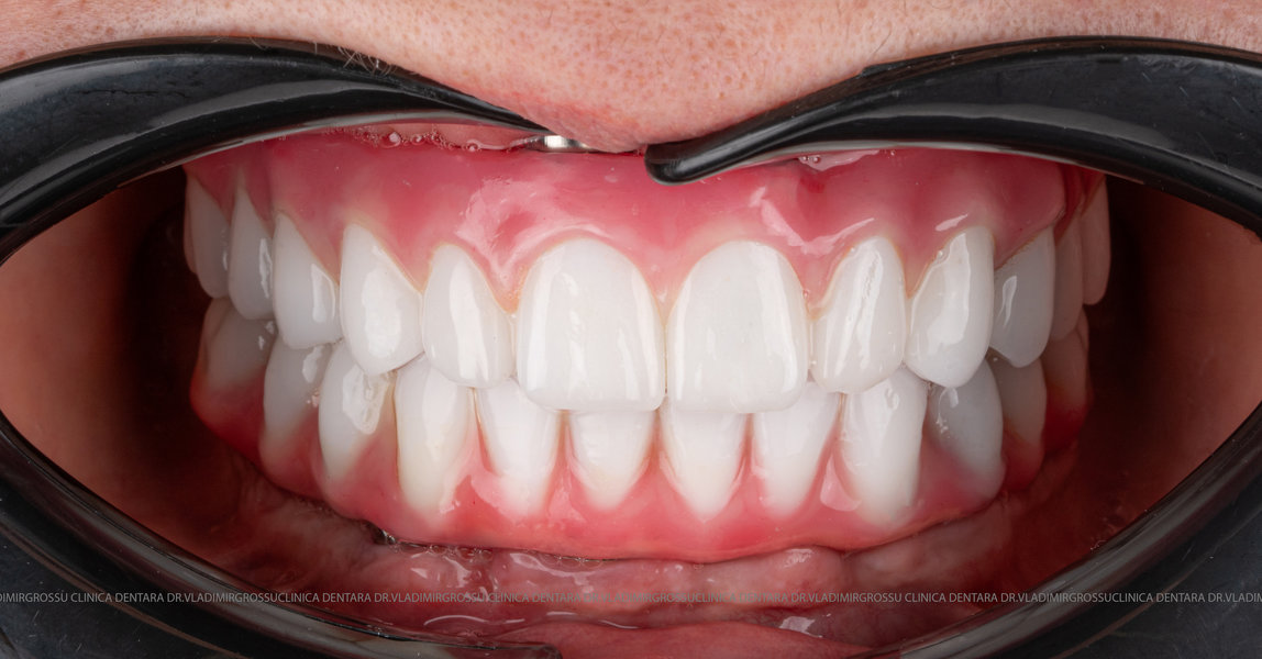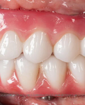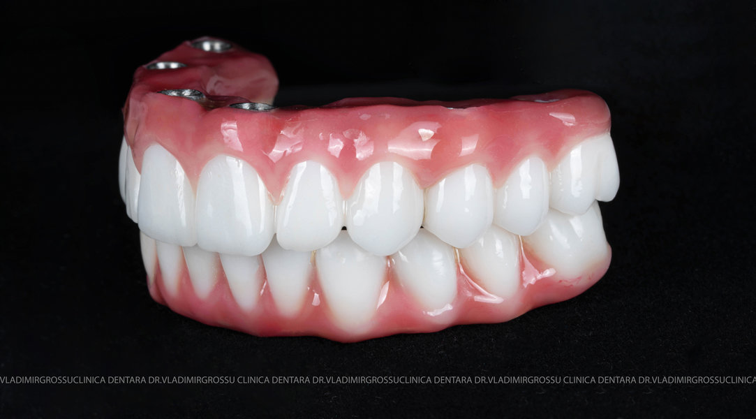 - Proteză definitivă realizată din metaloceramică sau zirconiu, cu 12-14 unități (soluția recomandată).