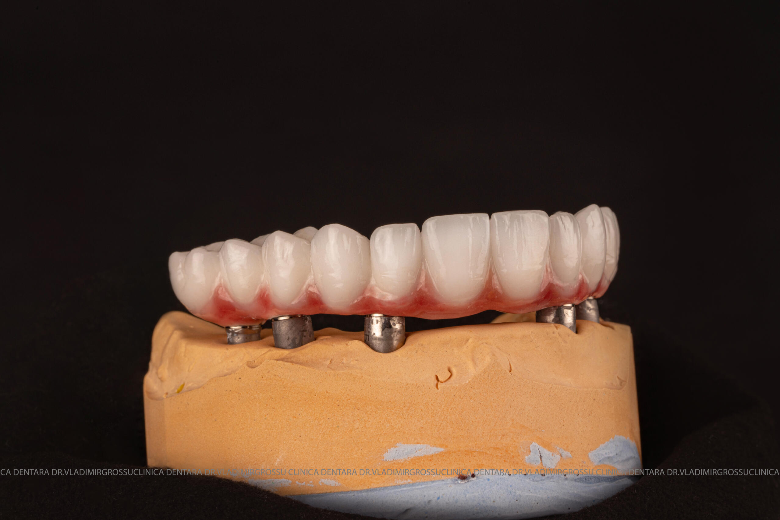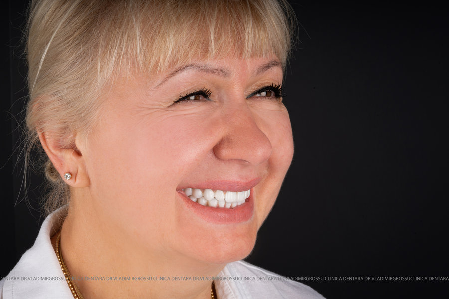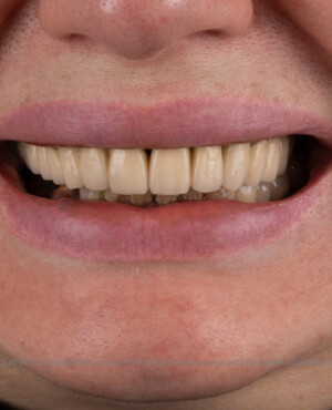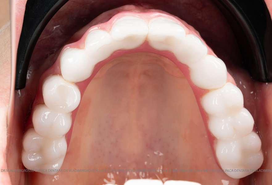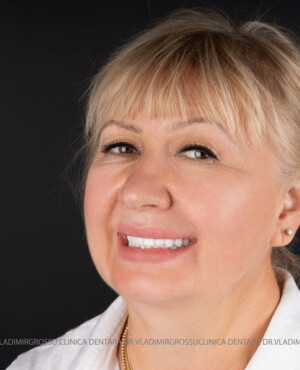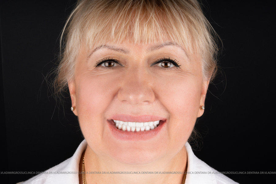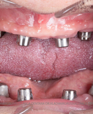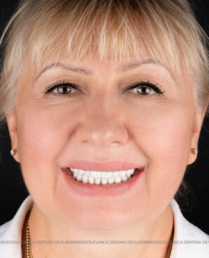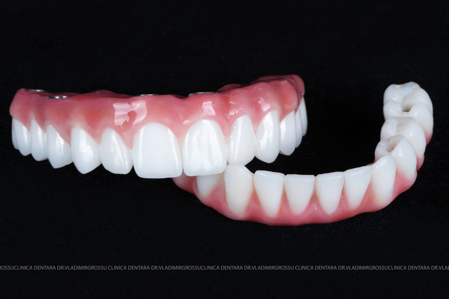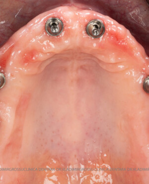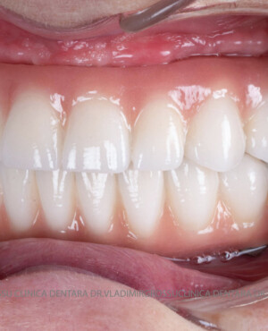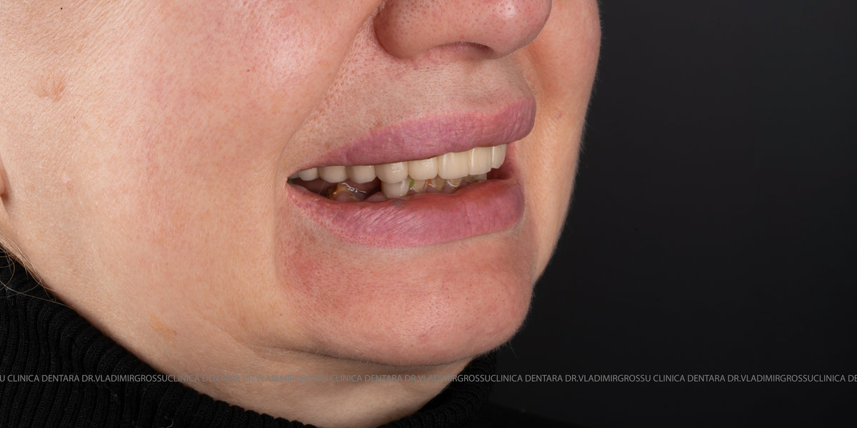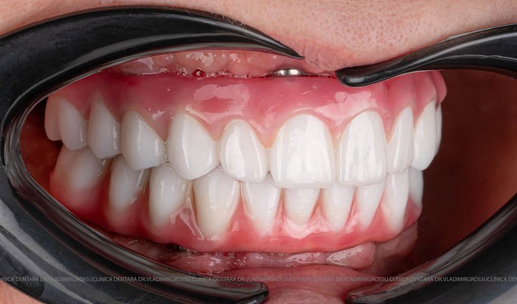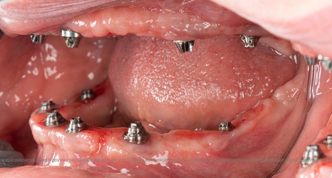 - Proteză definitivă realizată din metaloceramică sau zirconiu, cu 12-14 unități (soluția recomandată).