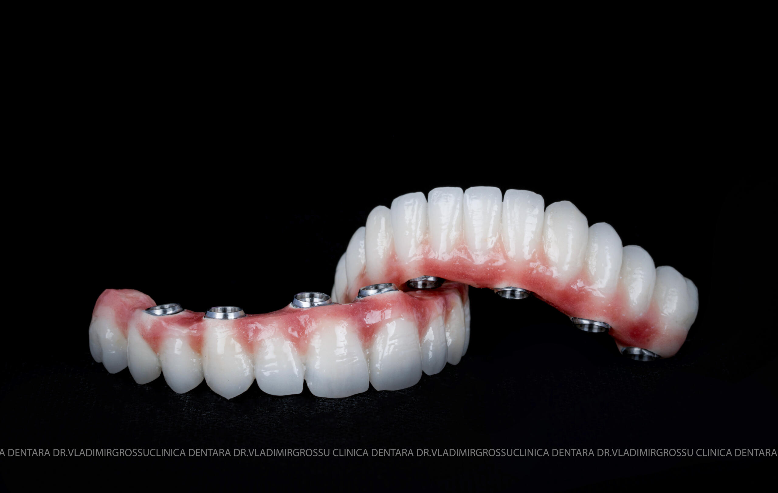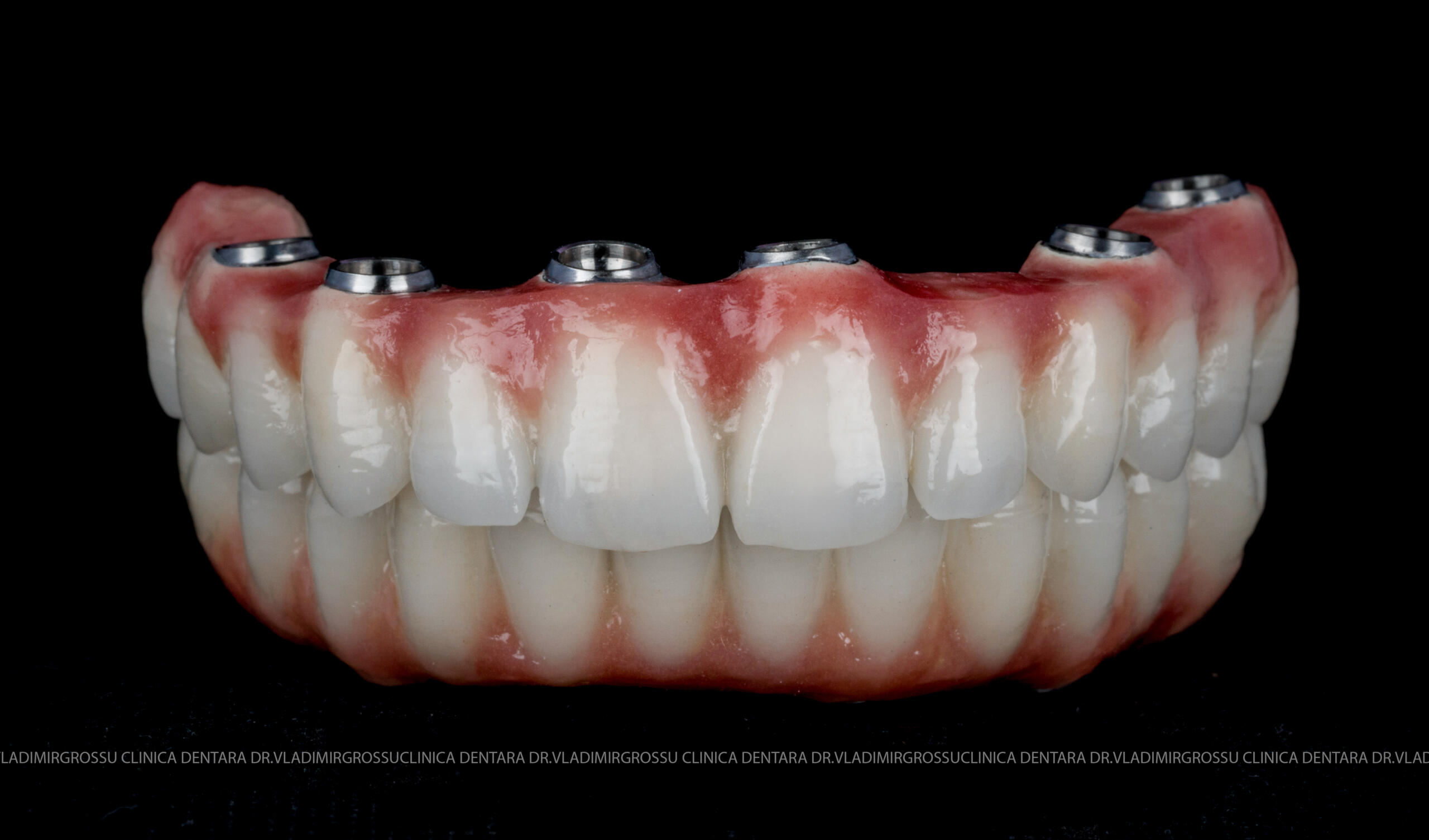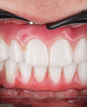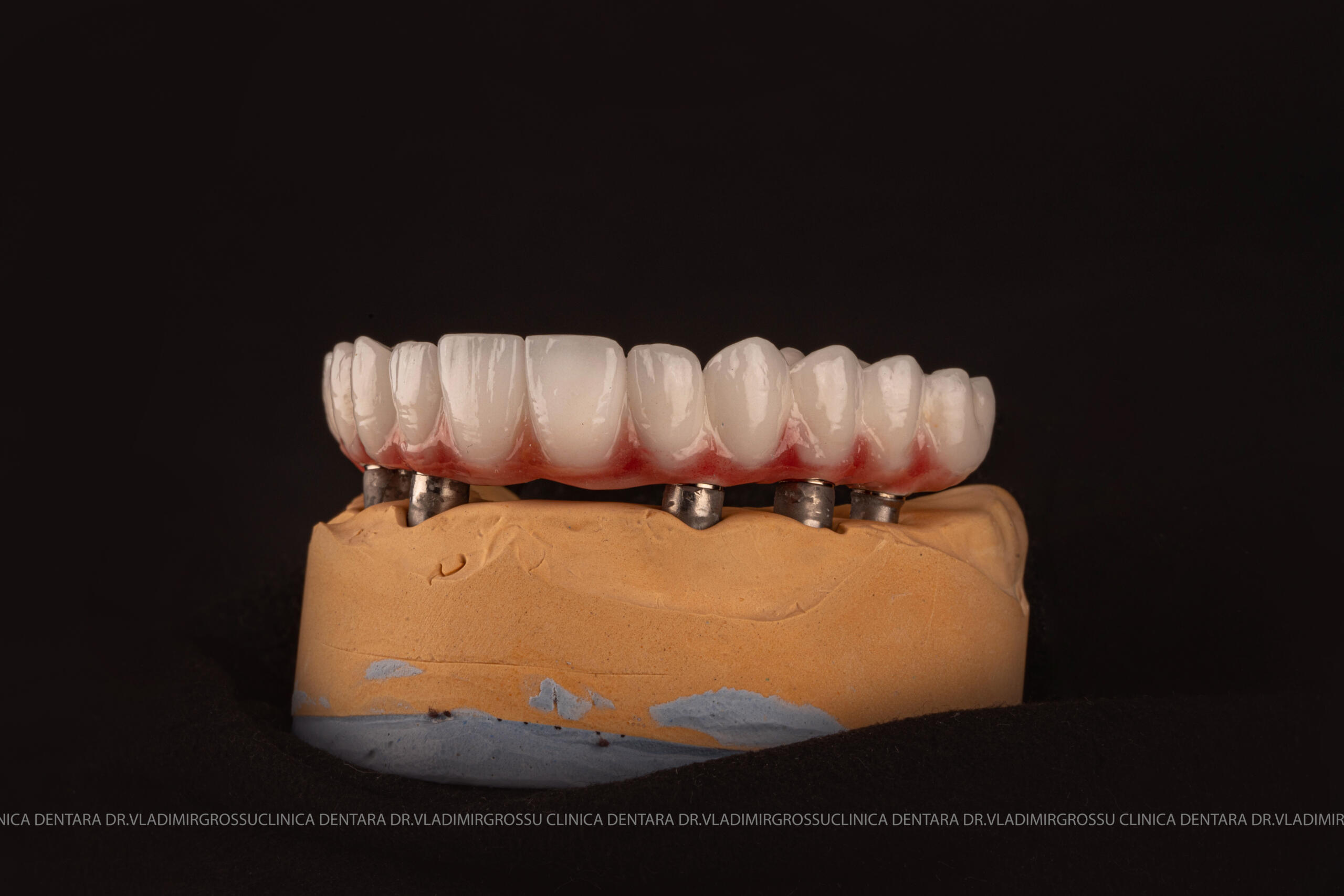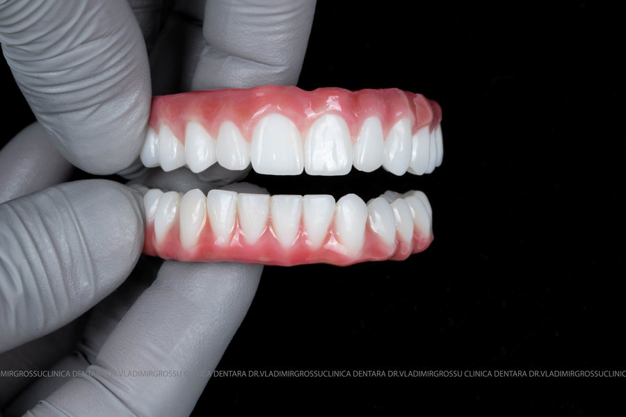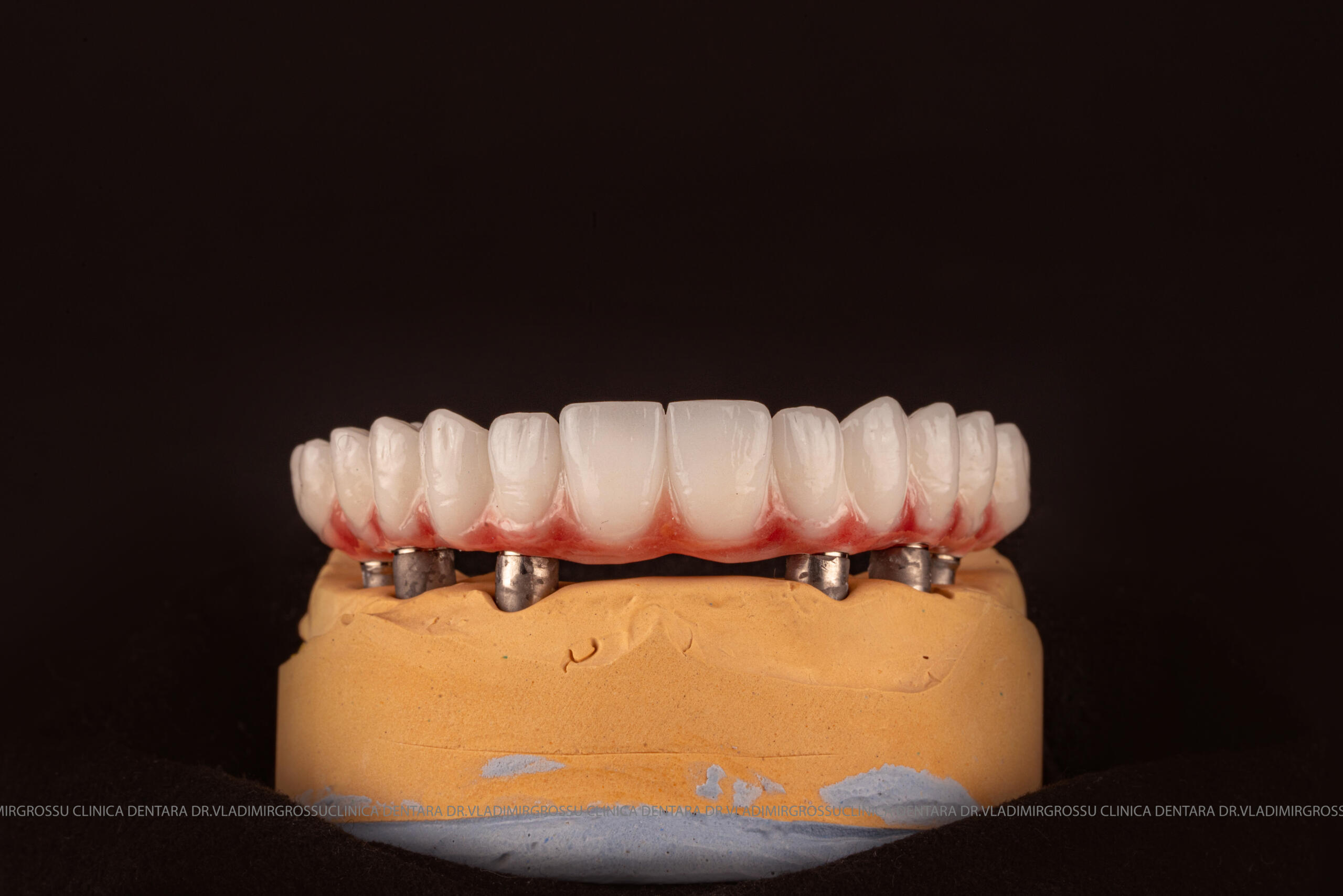 - Proteză definitivă realizată din metaloceramică sau zirconiu, cu 12-14 unități (soluția recomandată).