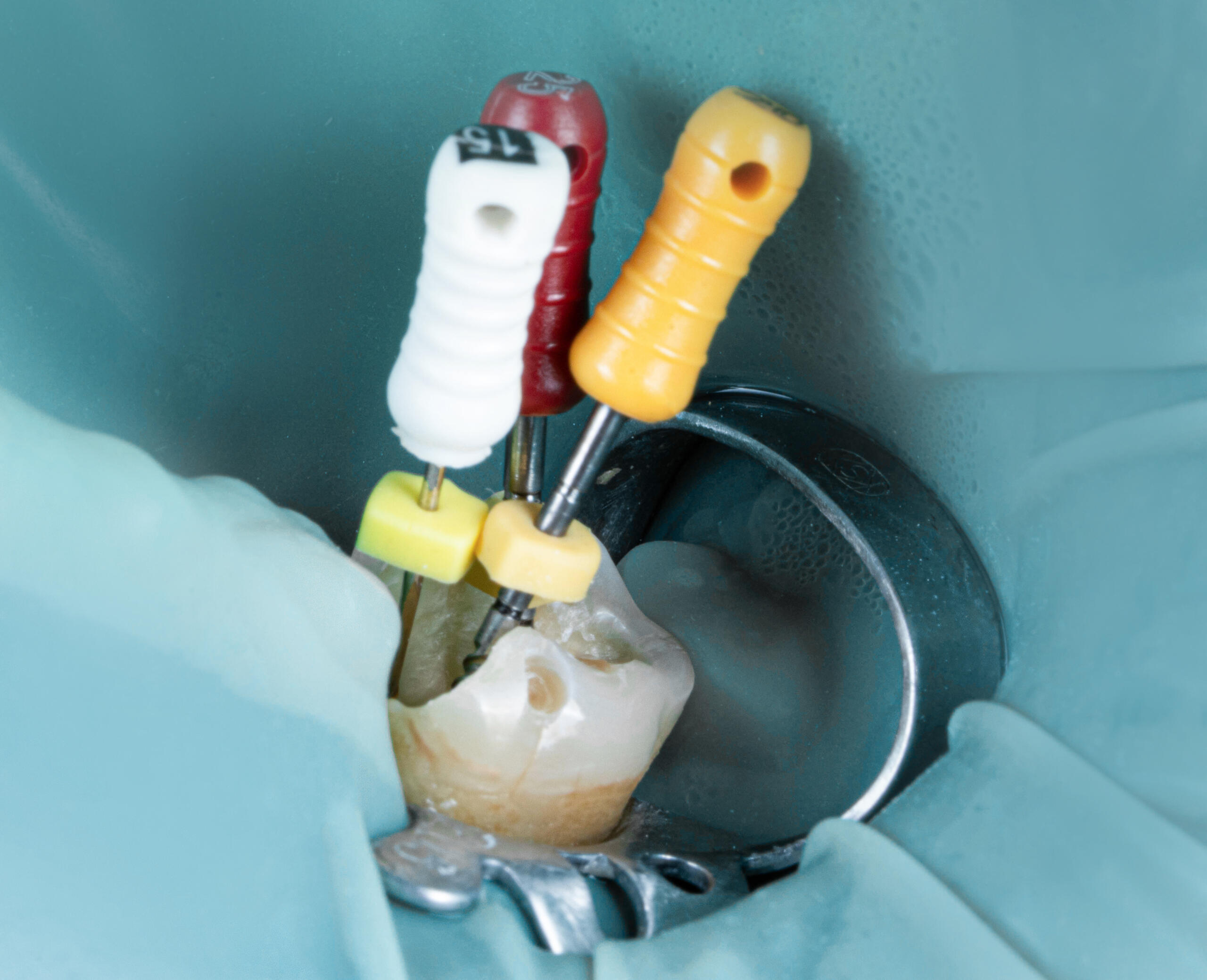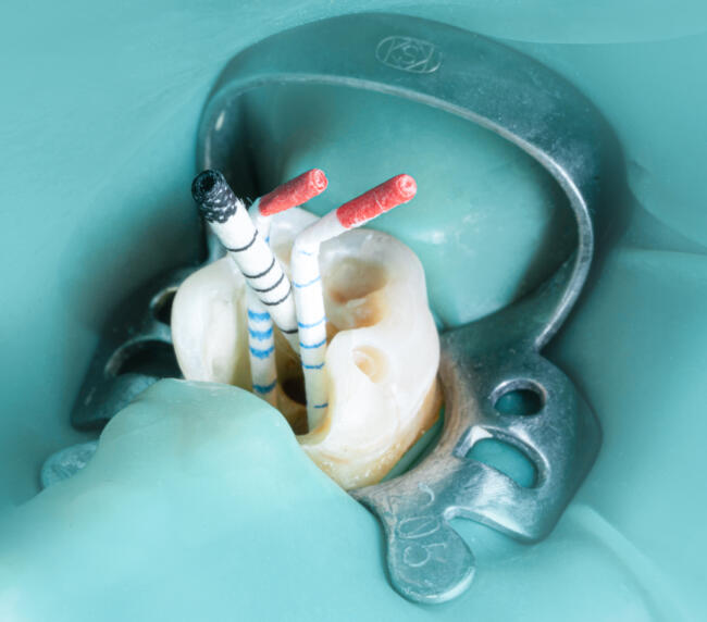 - Acces și curățare a canalelor radiculare – manual sau mecanizat