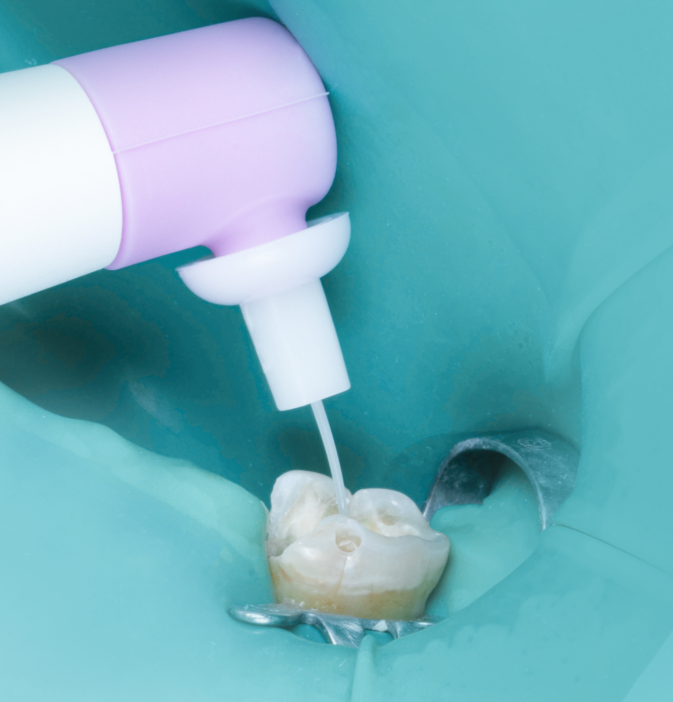 - Izolare cu diga dentară pentru protecție și sterilitate