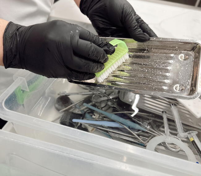 - Decontaminare: Reducerea numărului de microorganisme până la un nivel care permite manipularea sigură a instrumentelor.