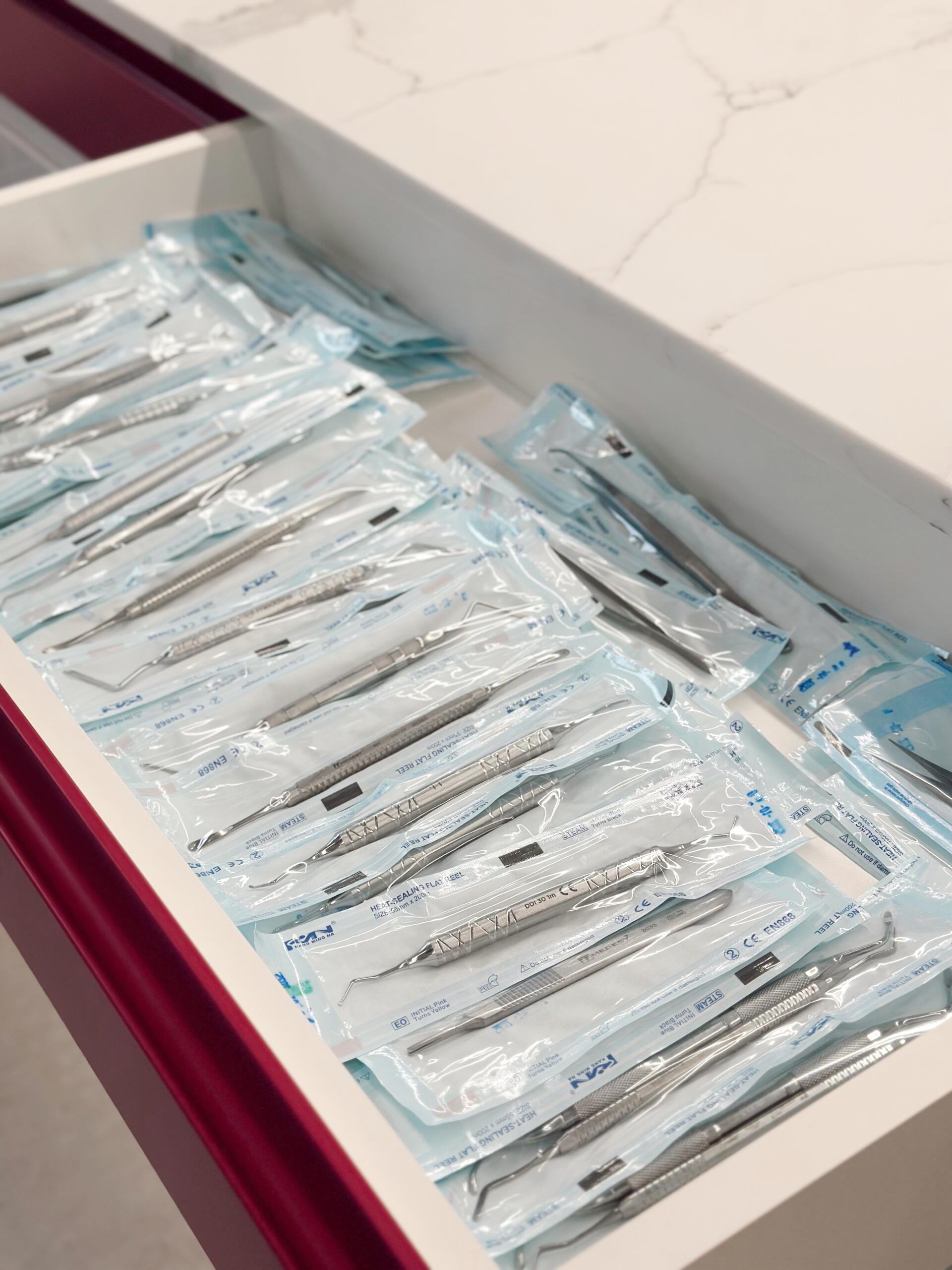 Pentru păstrarea instrumentelor sterile, se utilizează lămpi UV în zona de tratament.