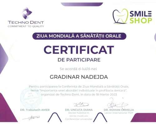 - 2023 – Importanța unei abordări individuale în profilaxia dentară.