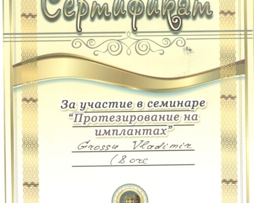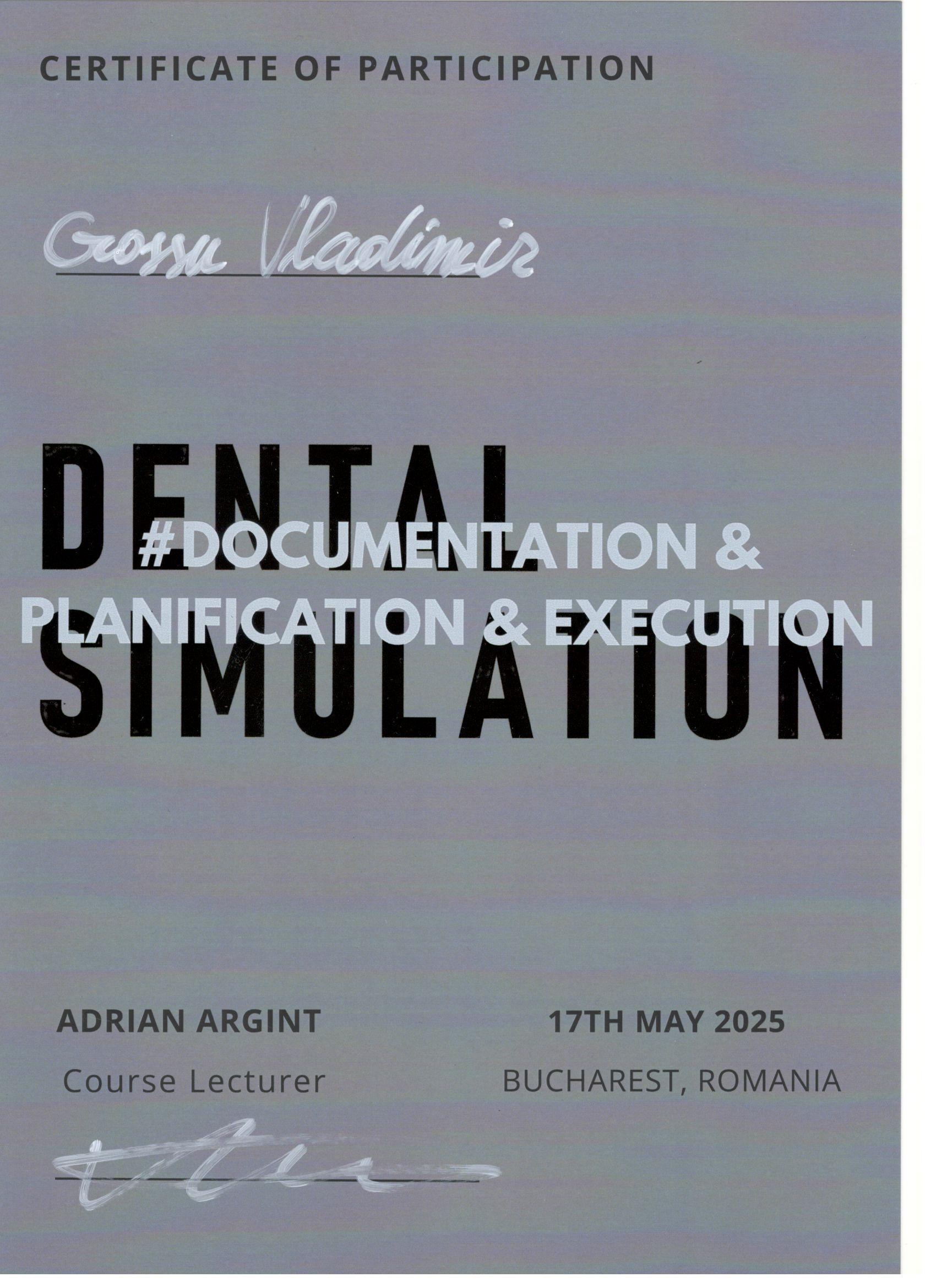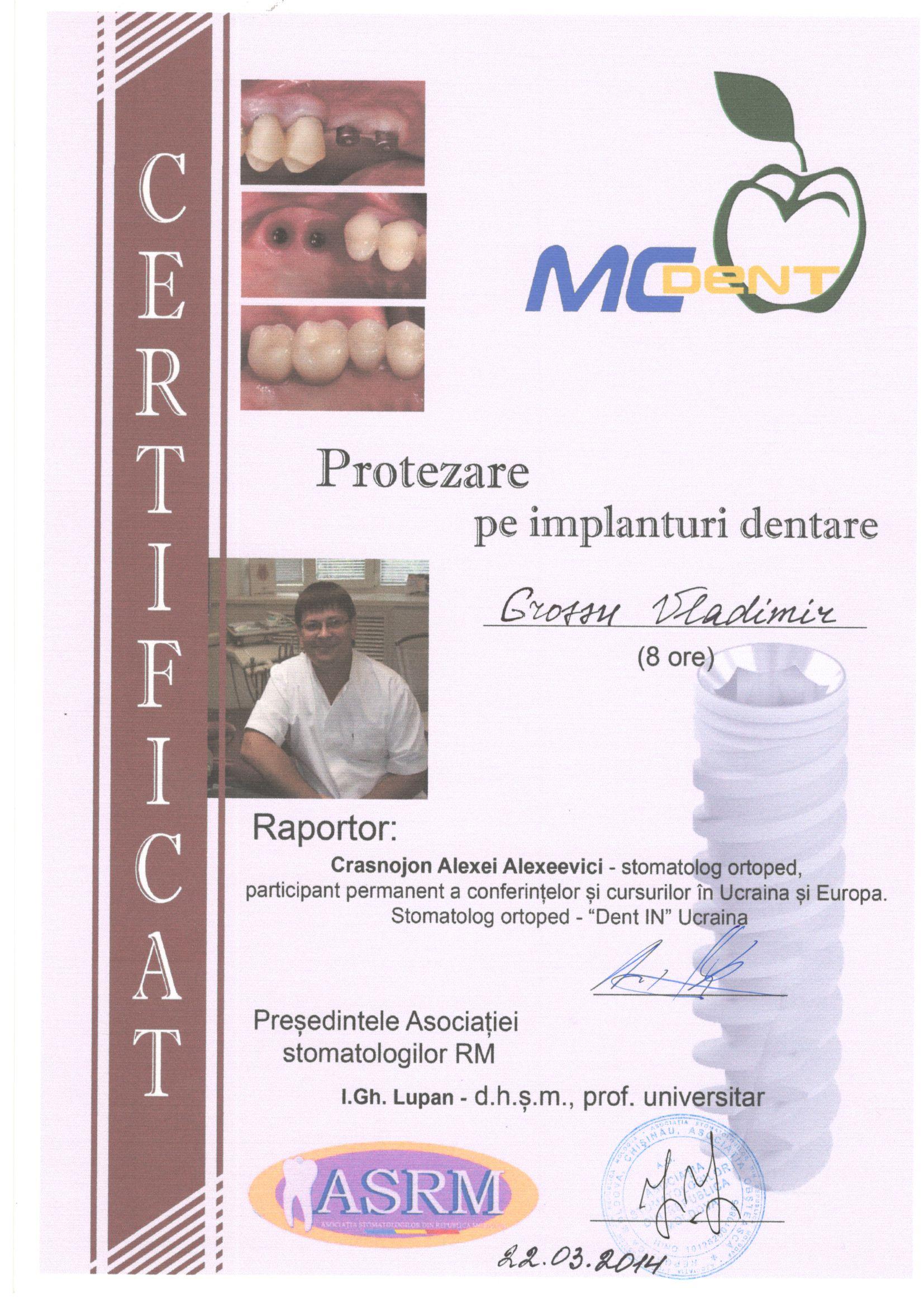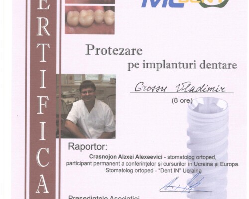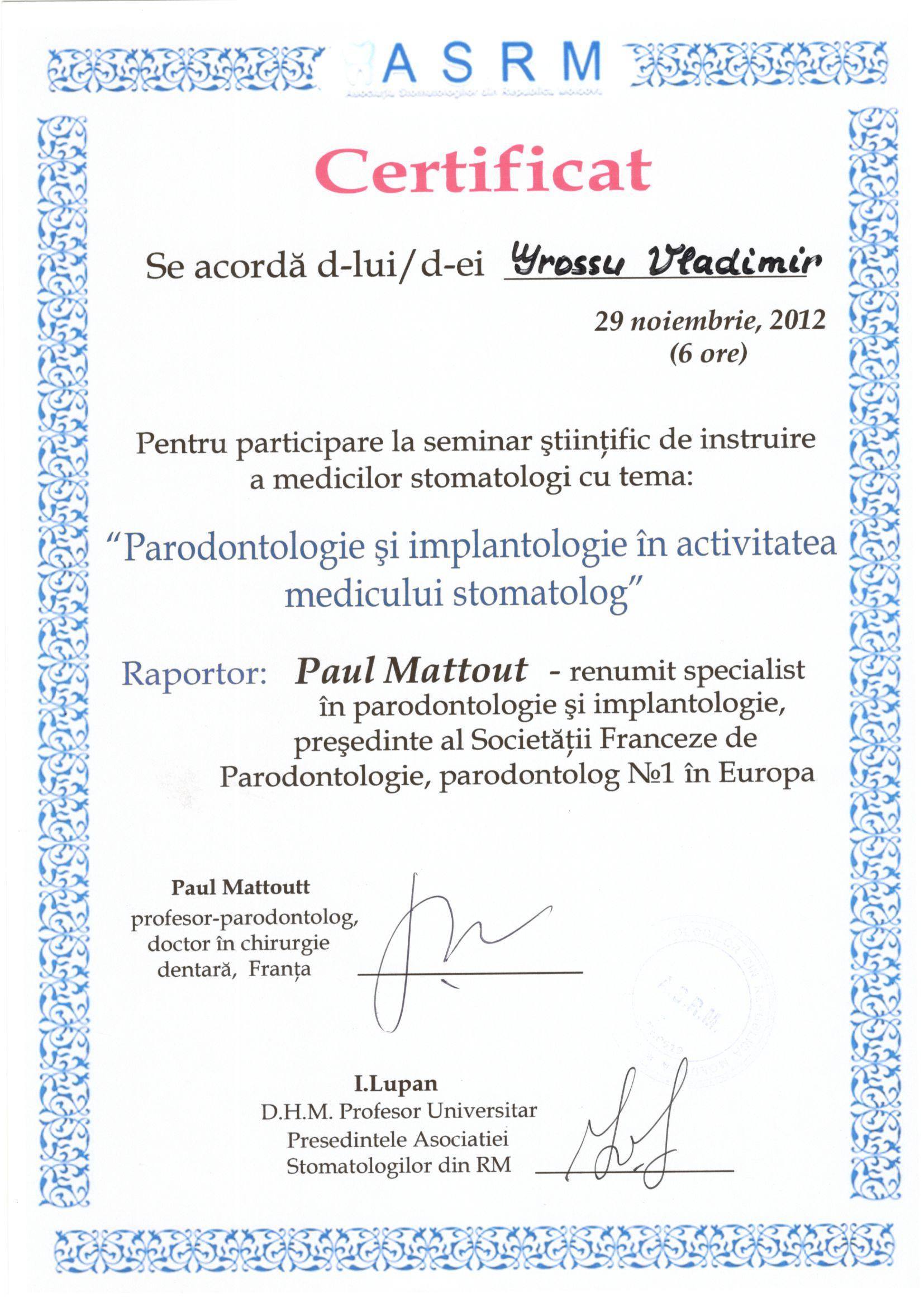 - 2012 – Planificarea și tratementul implanto protetic în diferite tipuri de adentații și oferte osoase. Compllicațiile tratamentului implantologic – (8 ore)