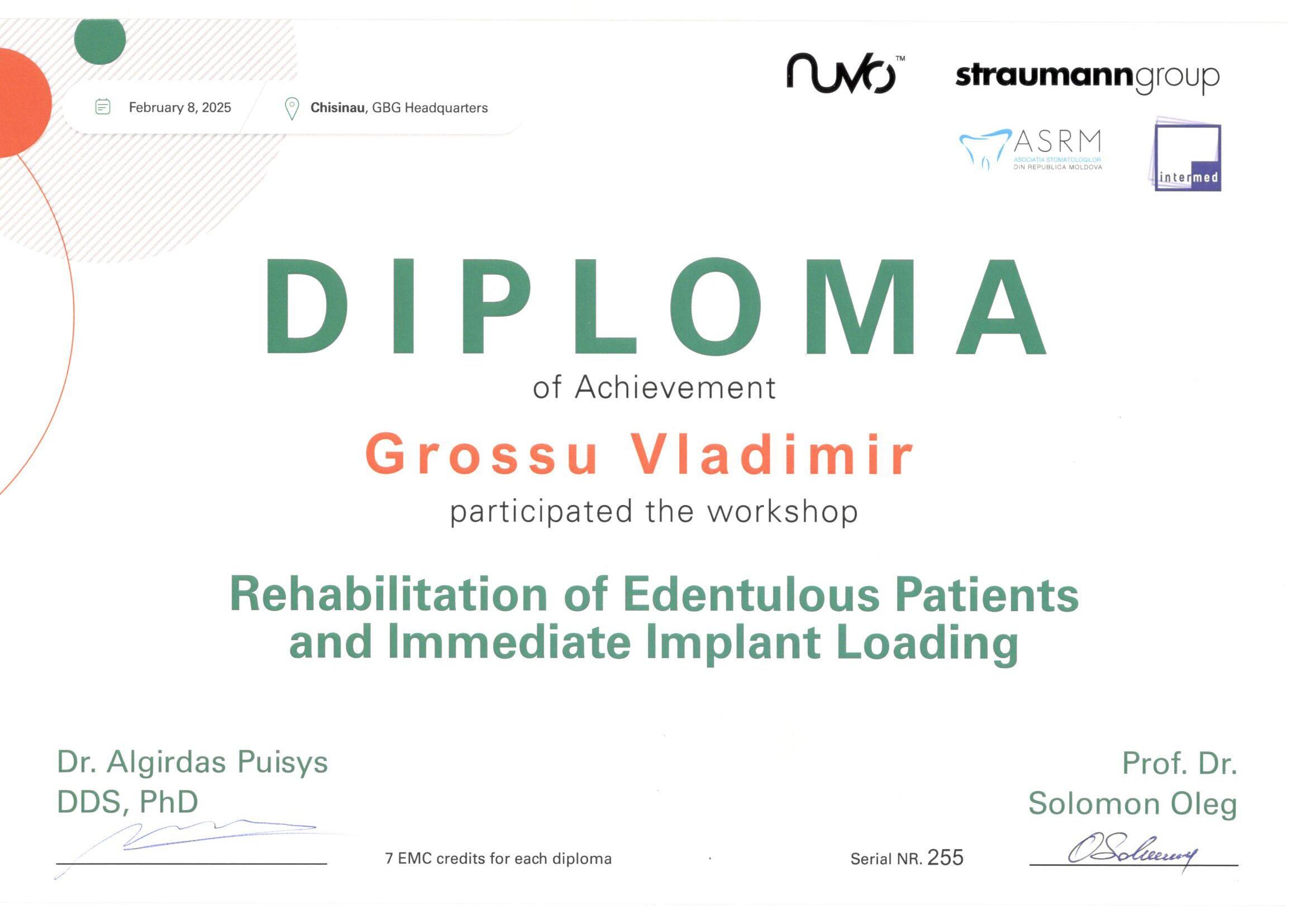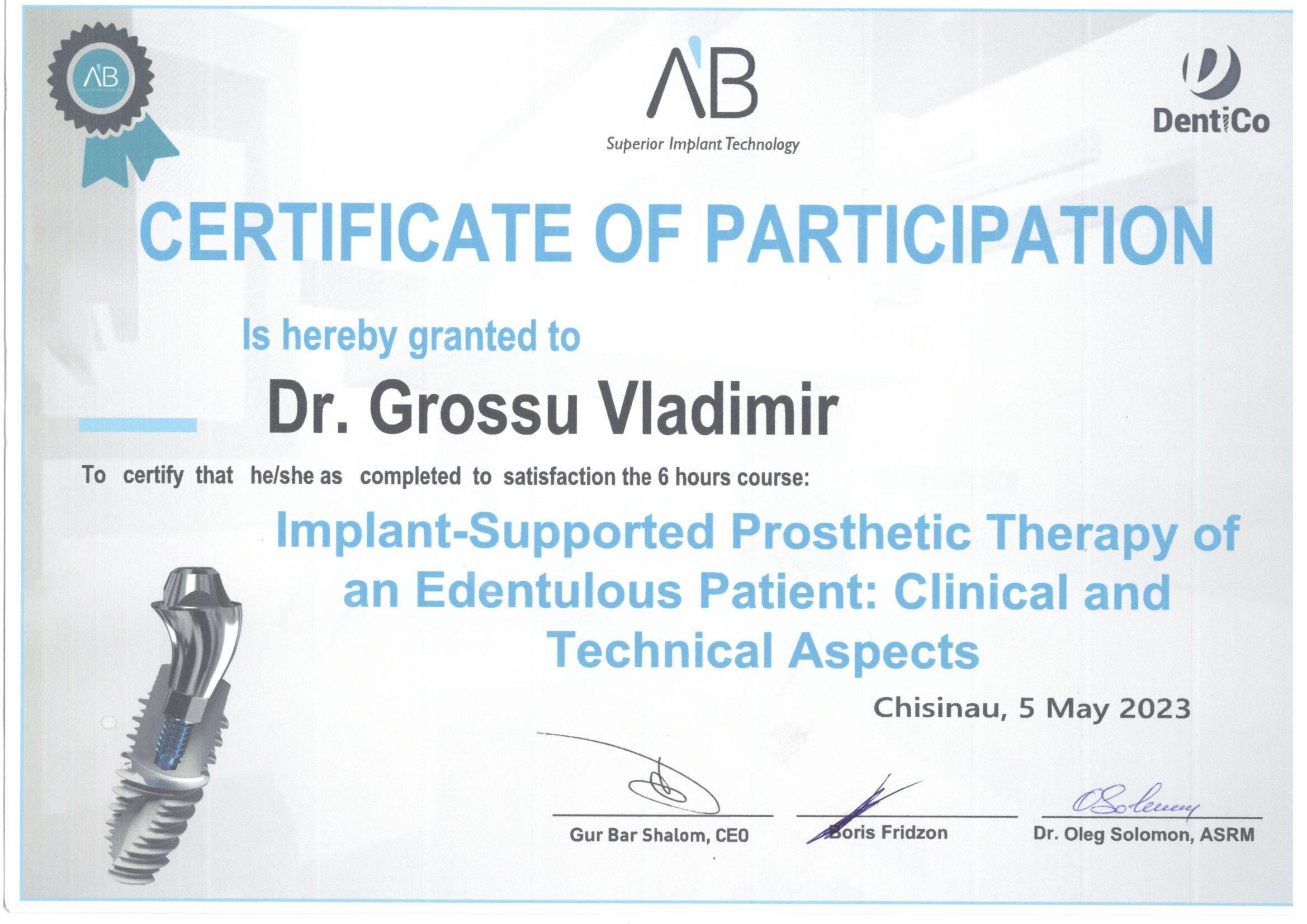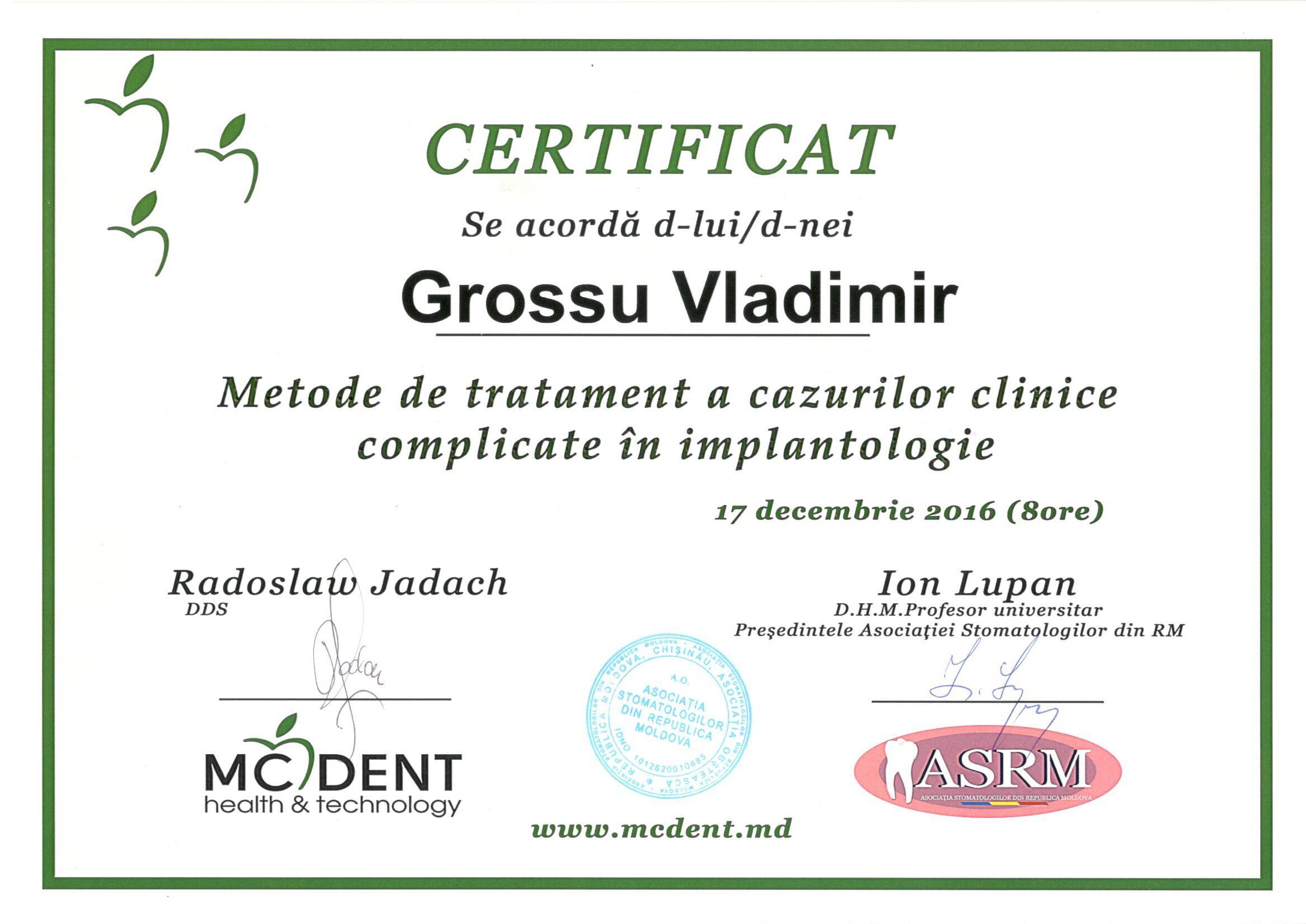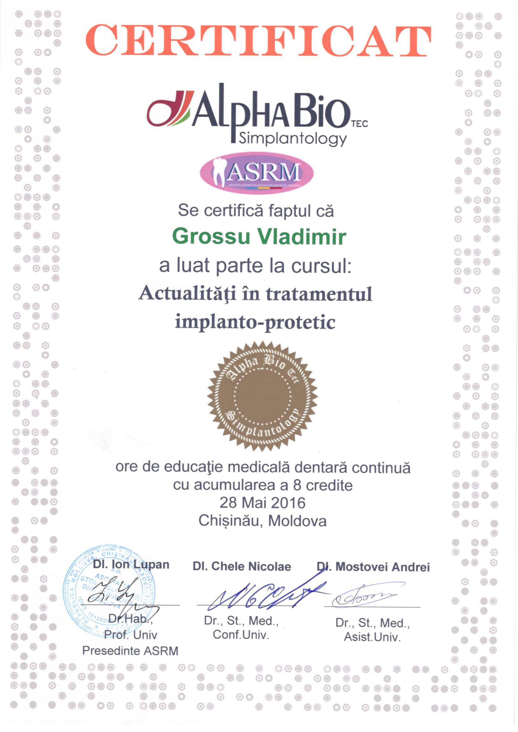 - 2012 – Planificarea și tratementul implanto protetic în diferite tipuri de adentații și oferte osoase. Compllicațiile tratamentului implantologic – (8 ore)