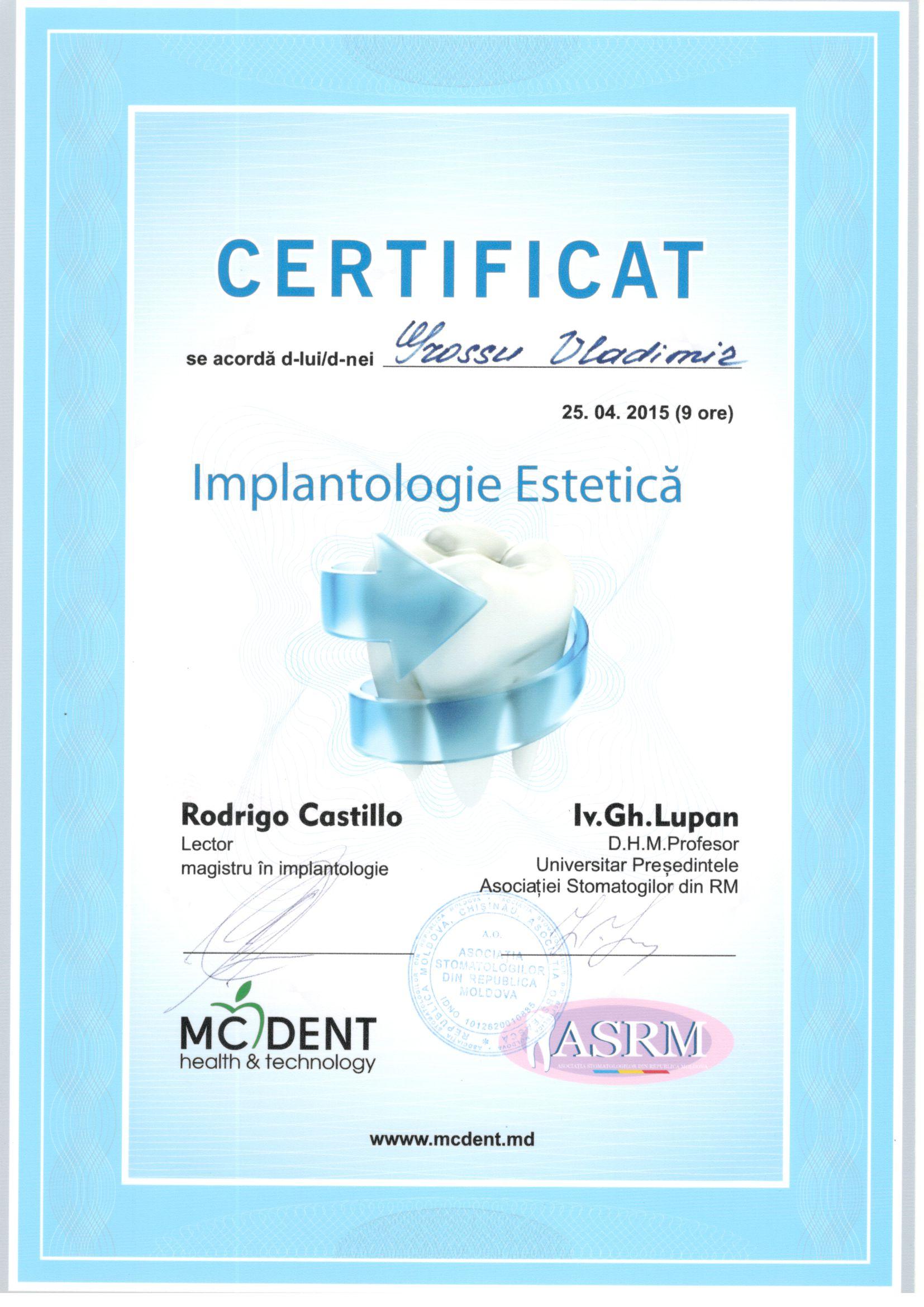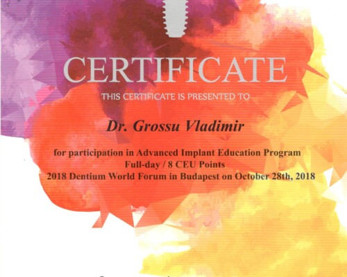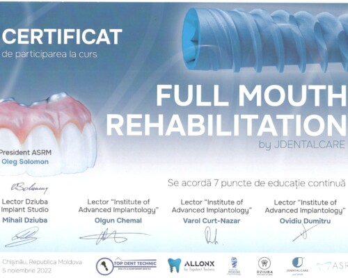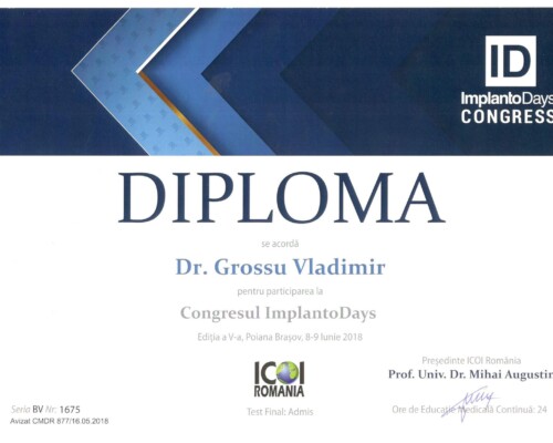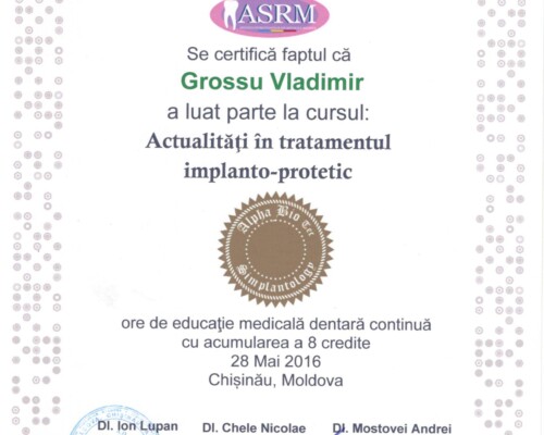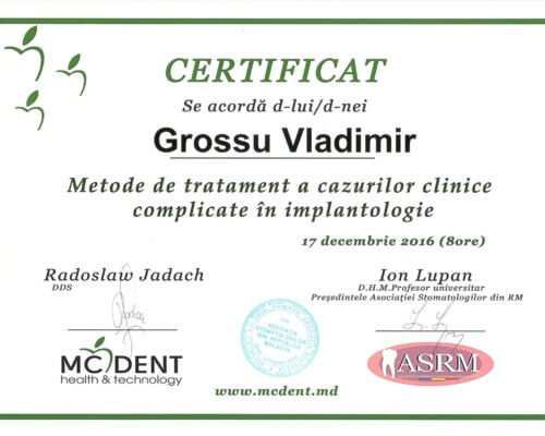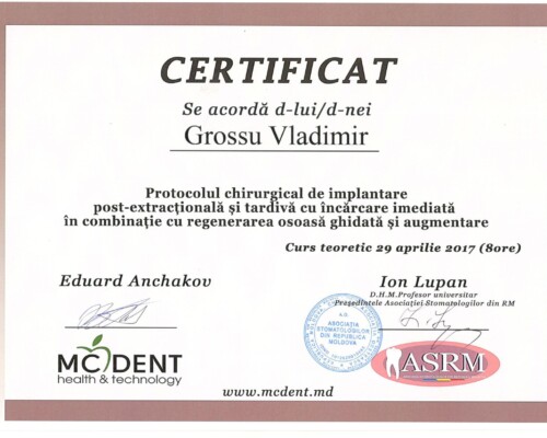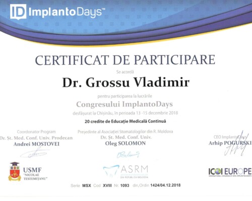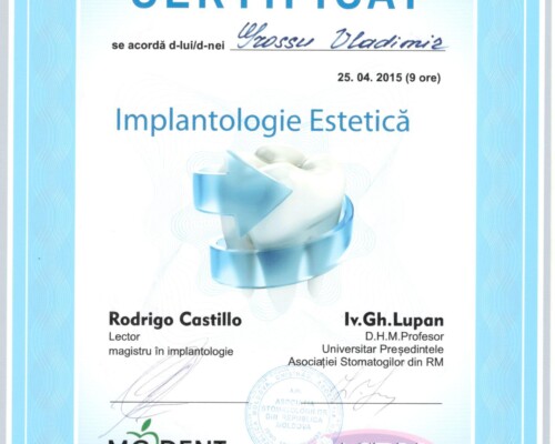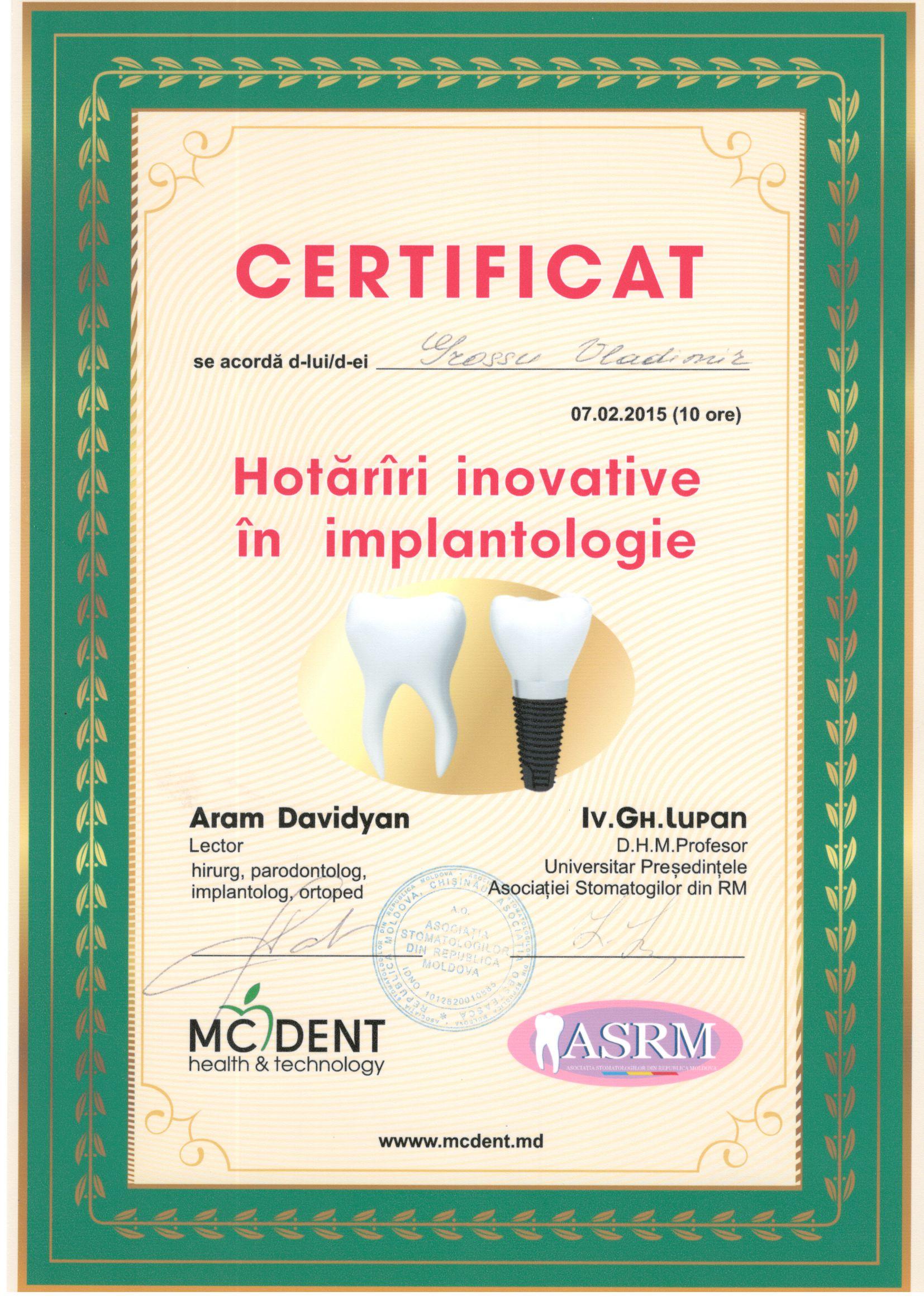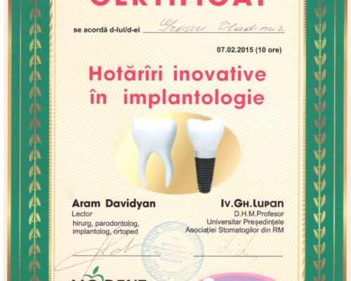 - 2015 – Hotărîri inovative în implantologie – (10 ore)
