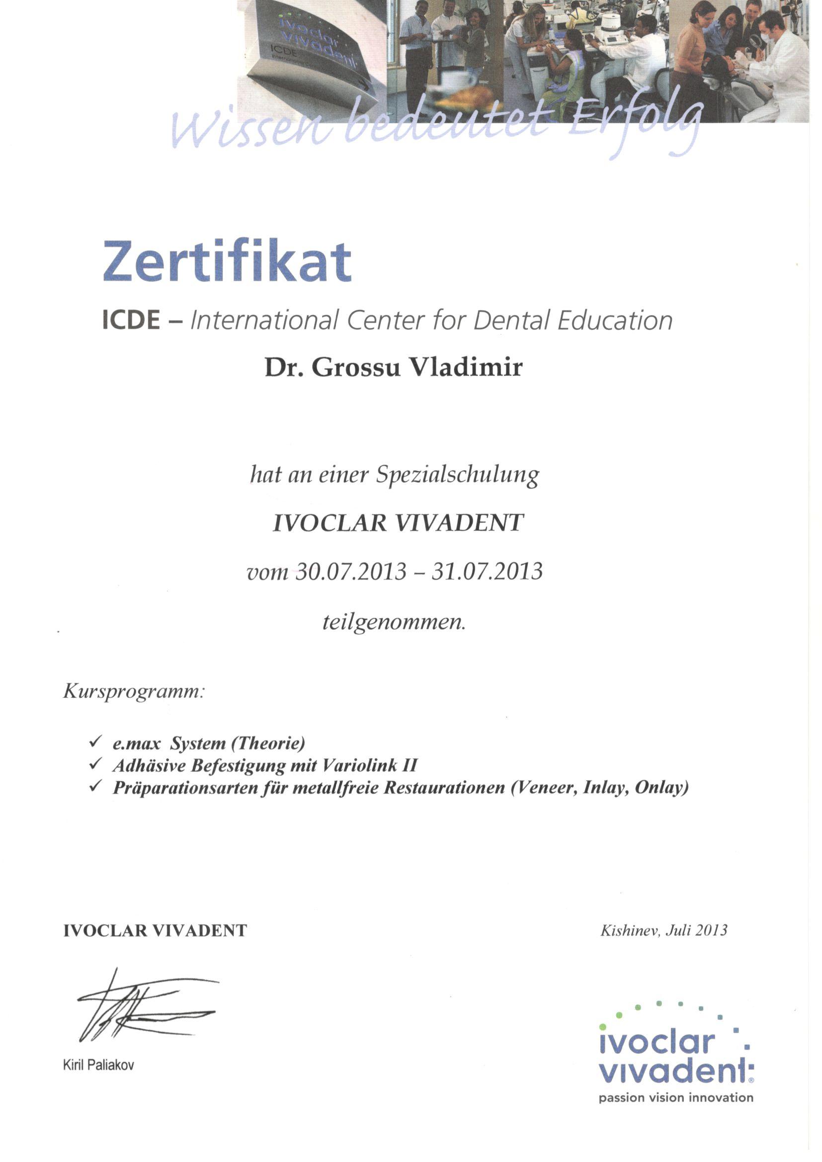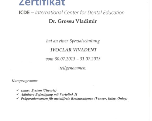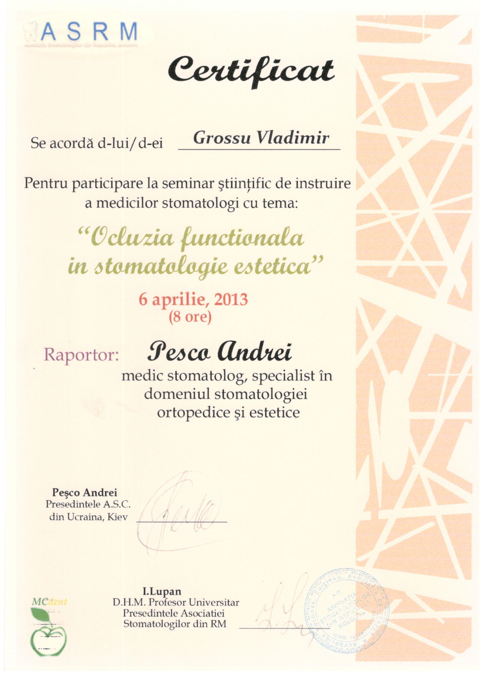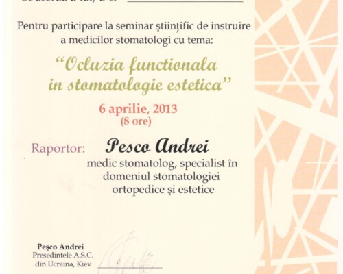 - 2013 – Ocluzia funcțională în stomatologia estetică – (8 ore)