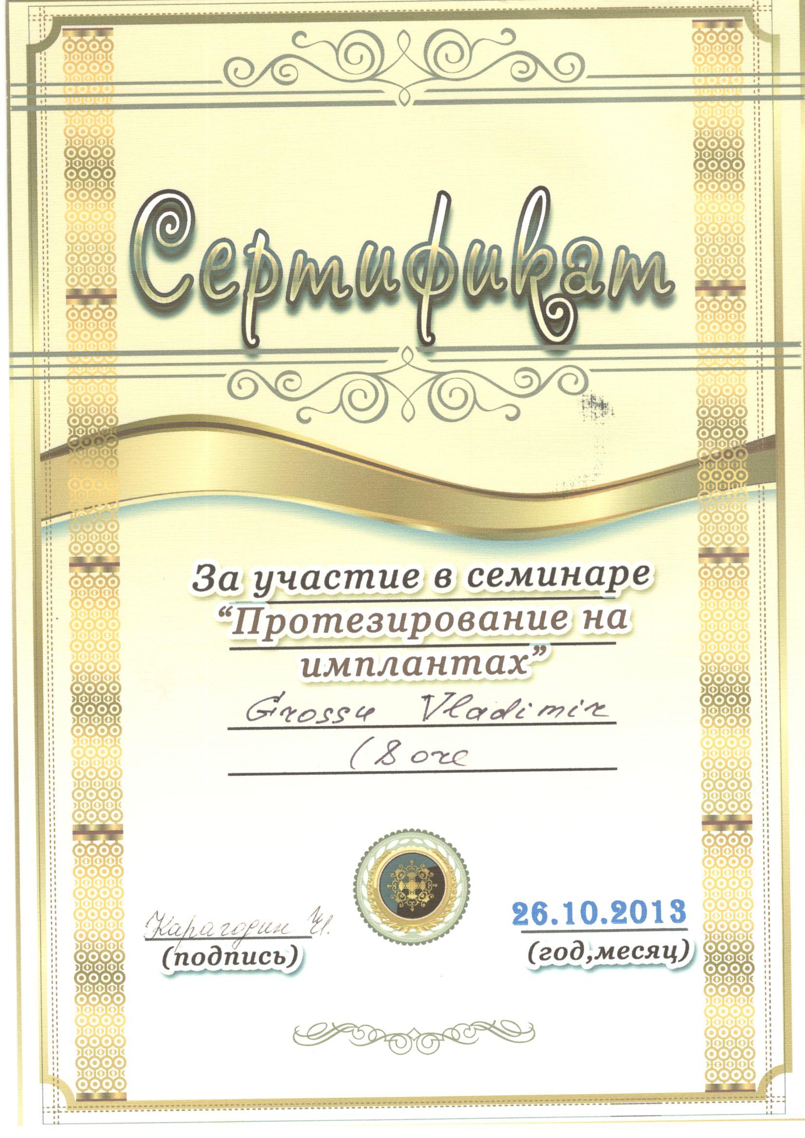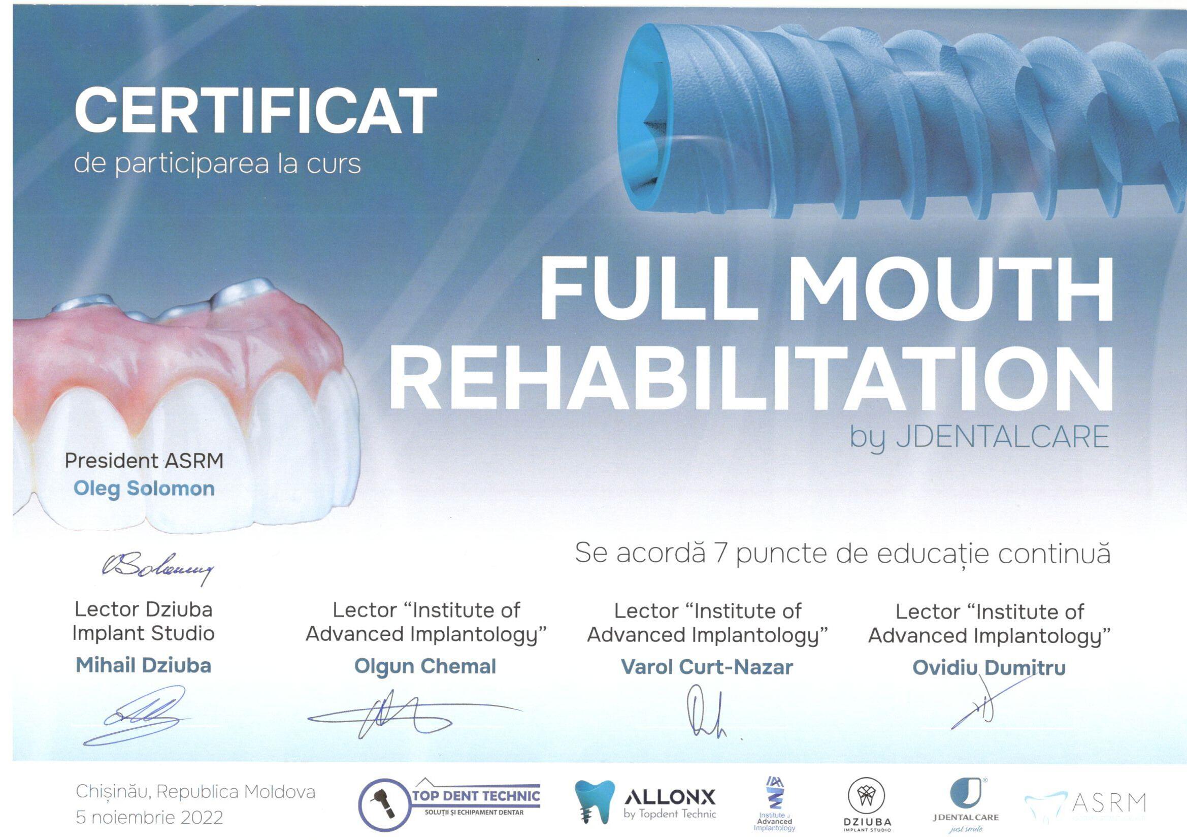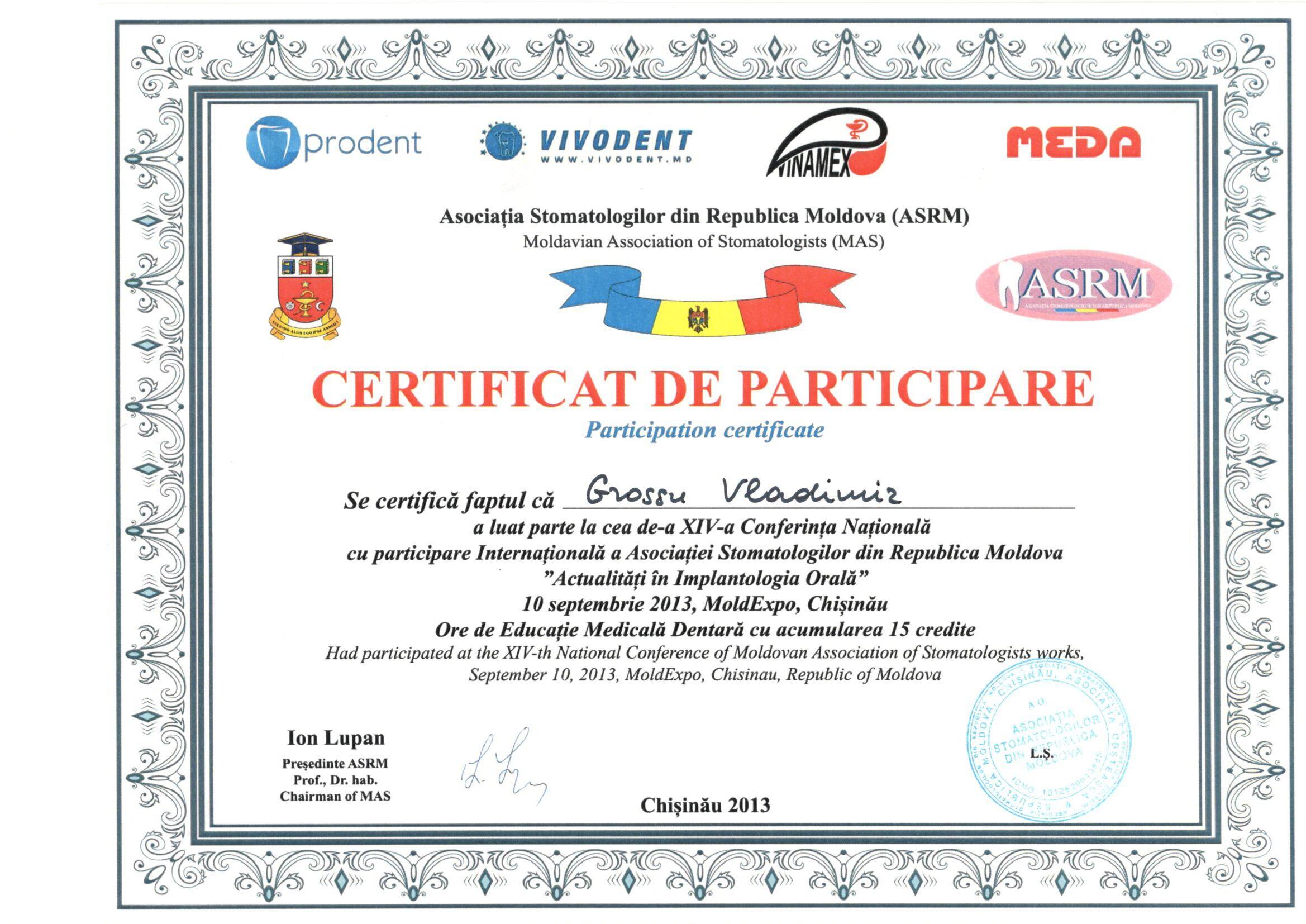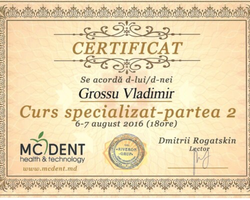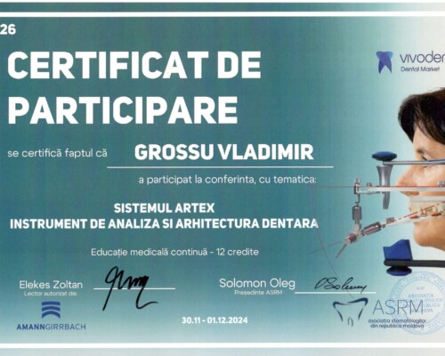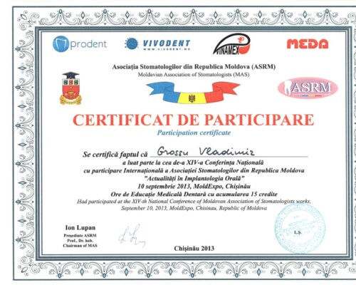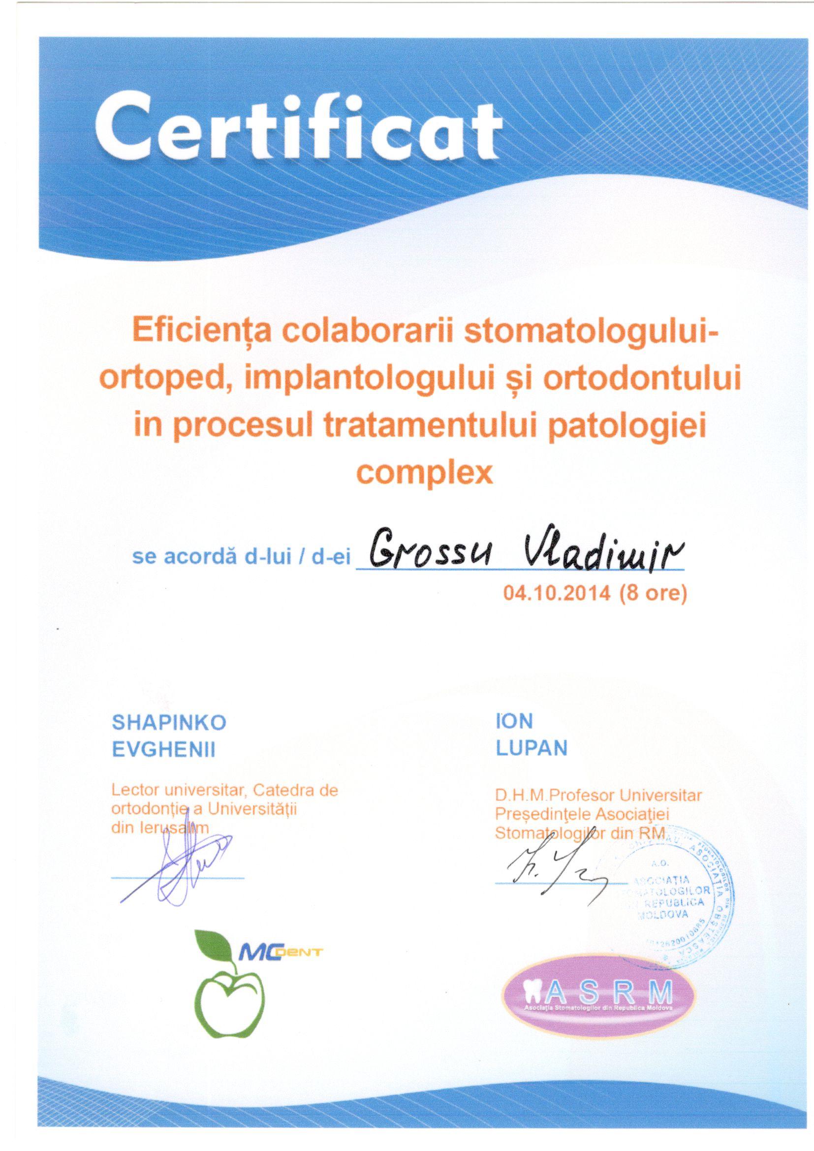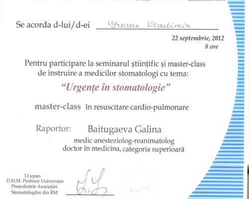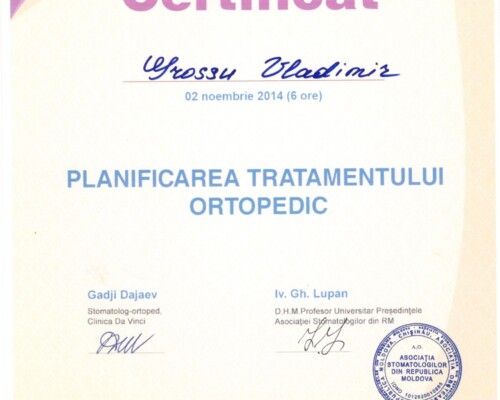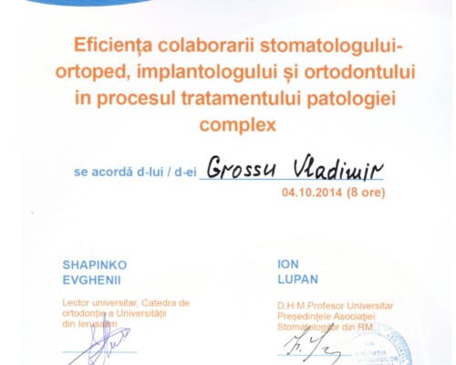 - 2014 – Eficiența colaborării stomatologului-ortoped, implantologului și ortodontului în procesul tratamentului patologiei complex – (8 ore)