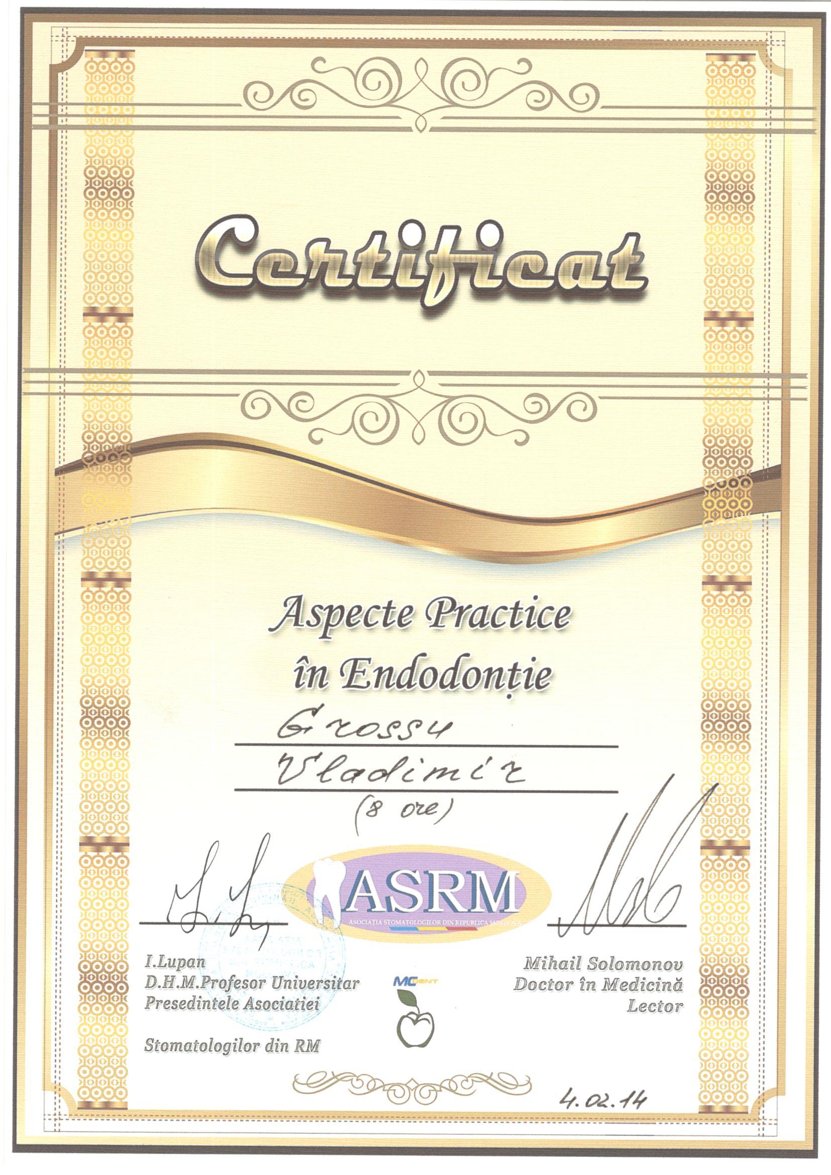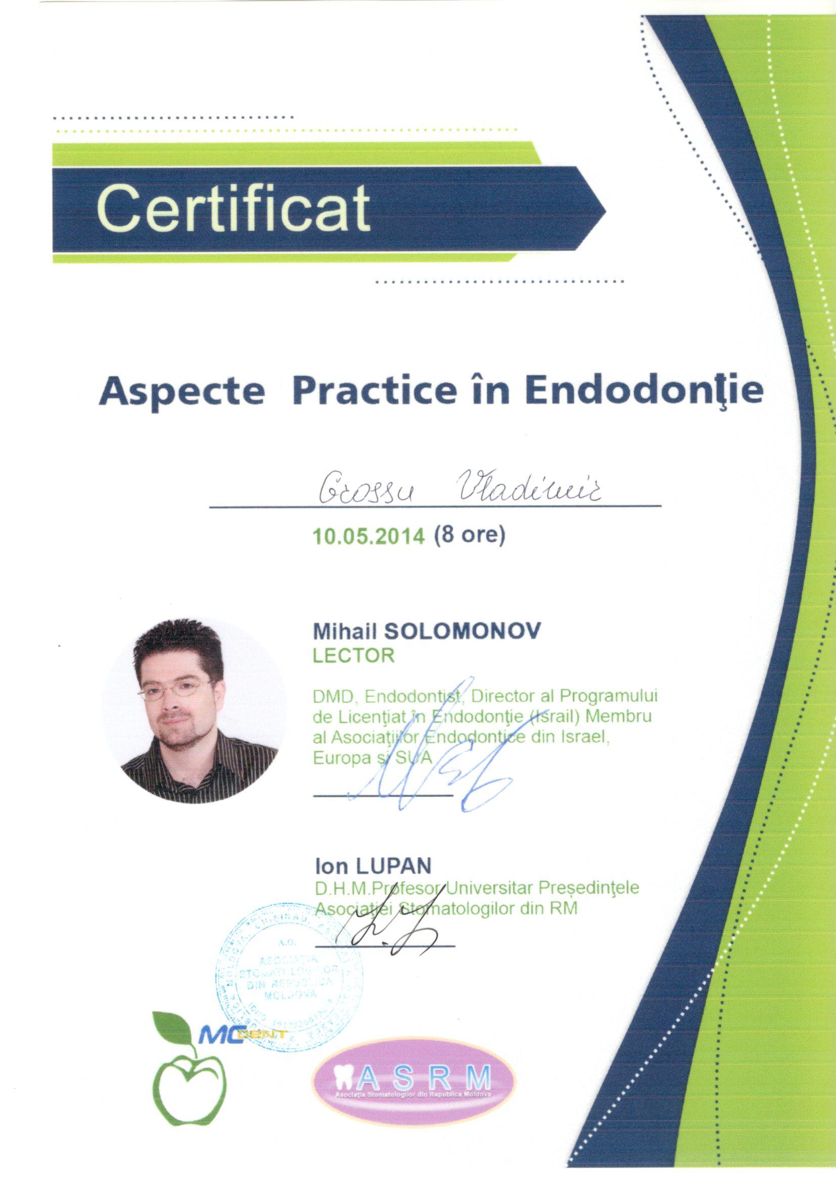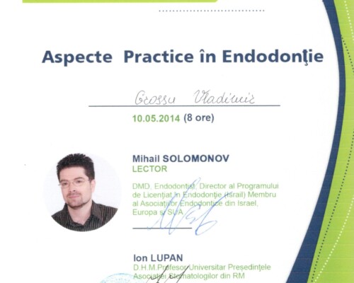 - 2012 – Tratamnet endodontic de la determinarea diagnosticului pînă la rezolvarea problemei – (14 ore)