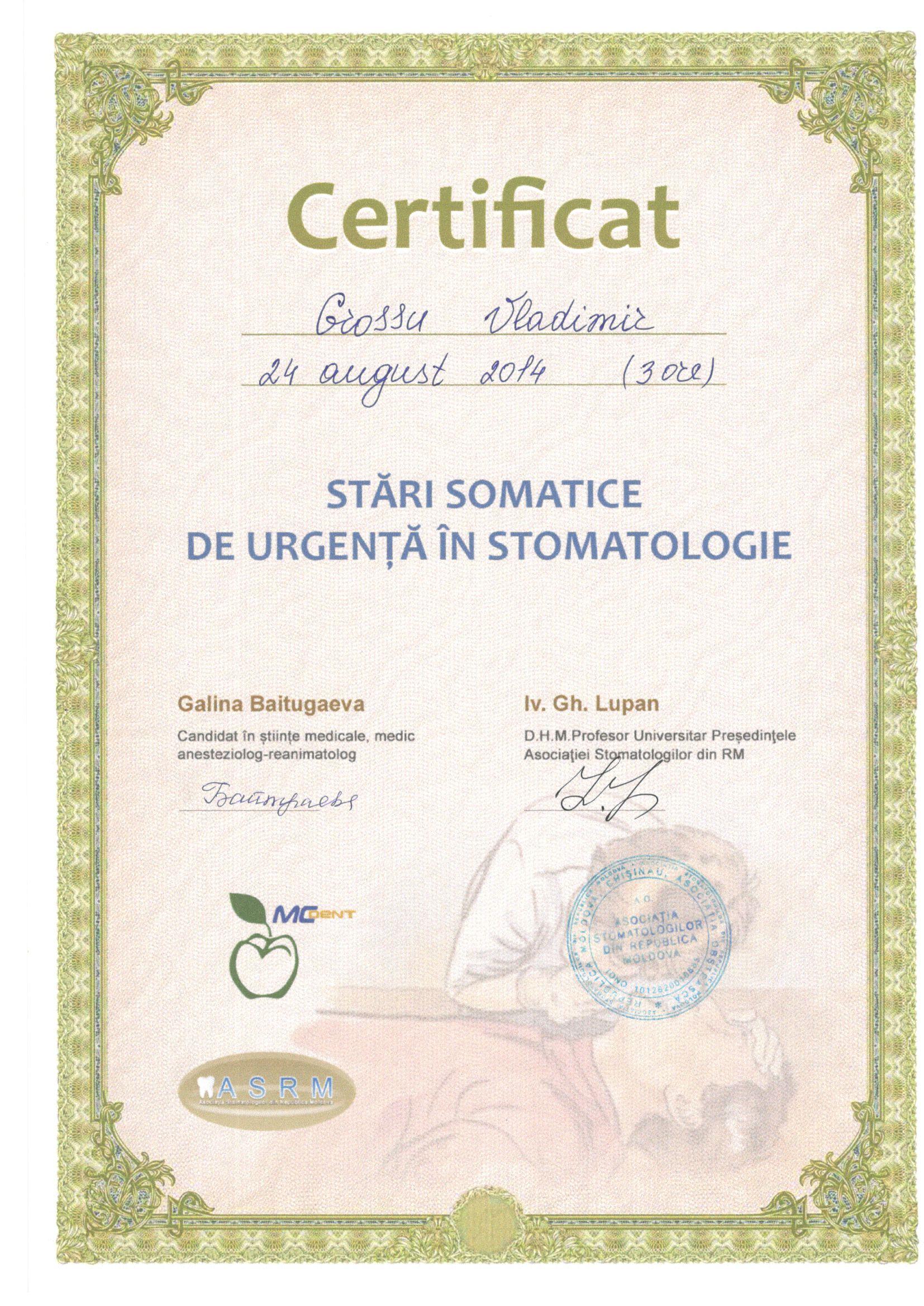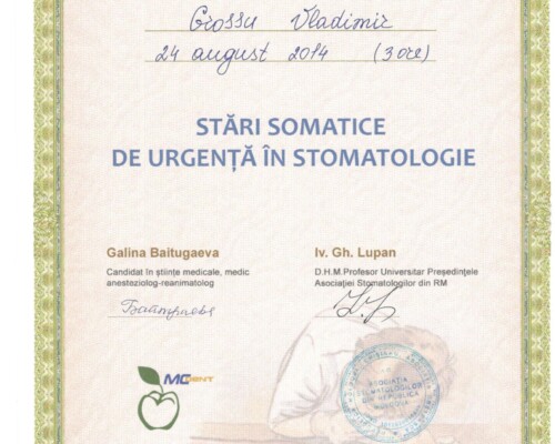 - 2014 – Particularitățile extracției dentare la pacienți cu diverse patologii concomitente – 100 ore