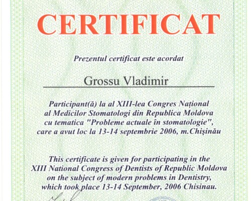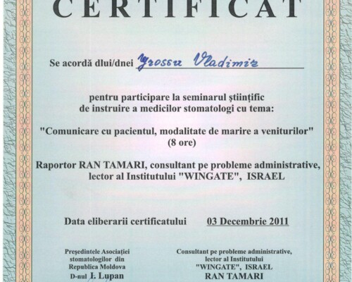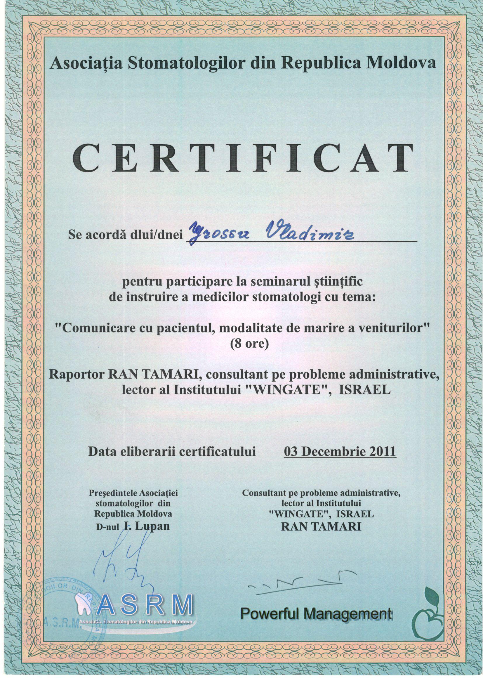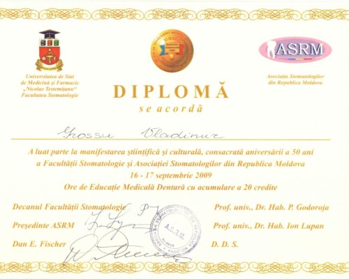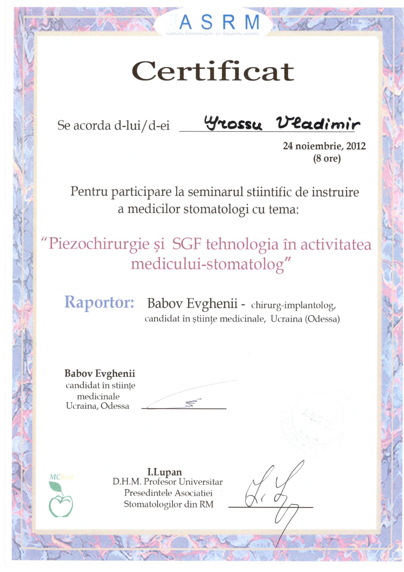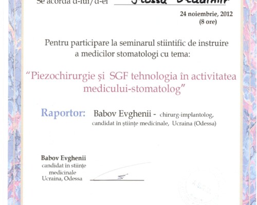 - 2012 – Piezochirurgie și SFG tehnologia în activitatea medicului stomatolog – (8 ore)