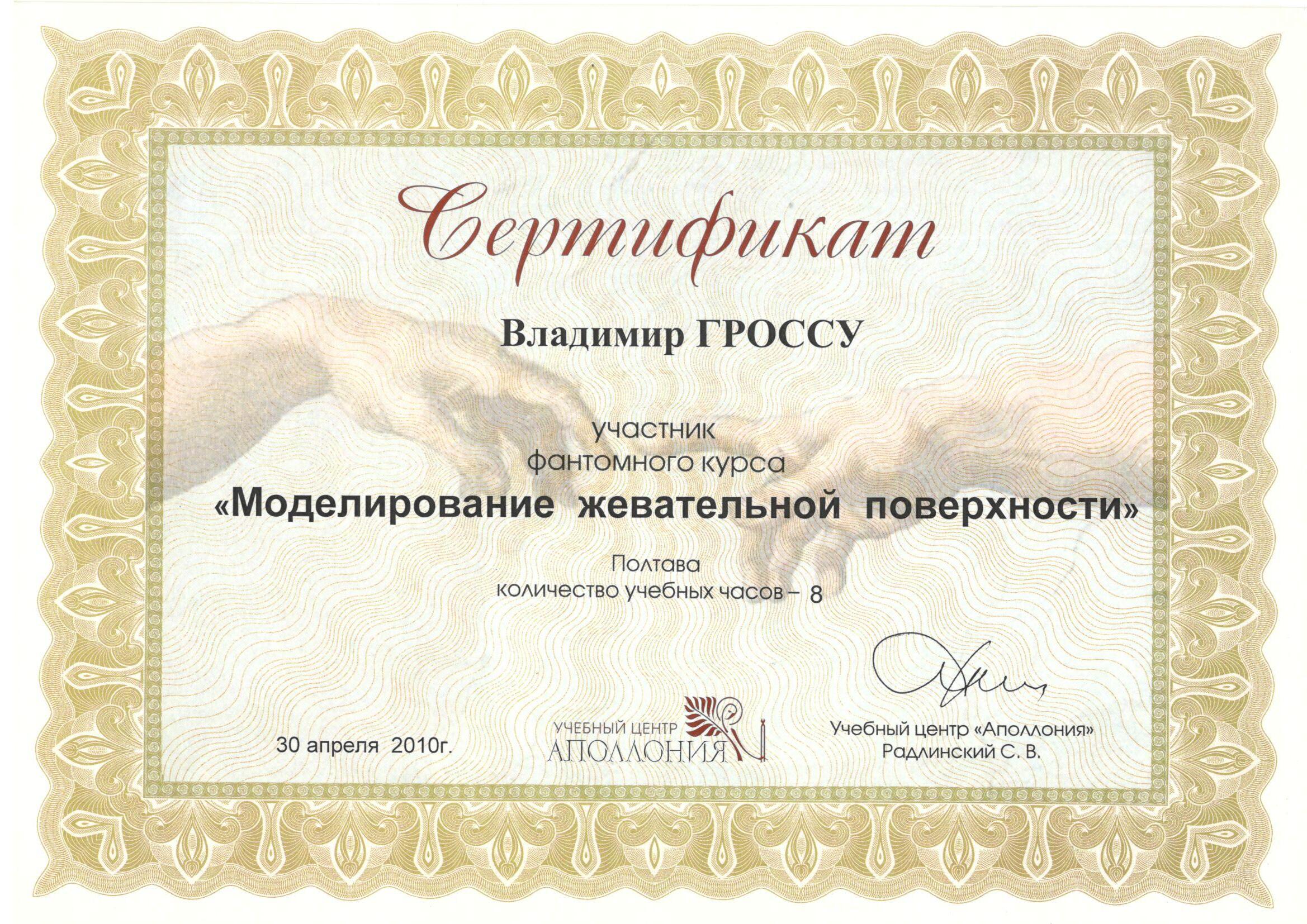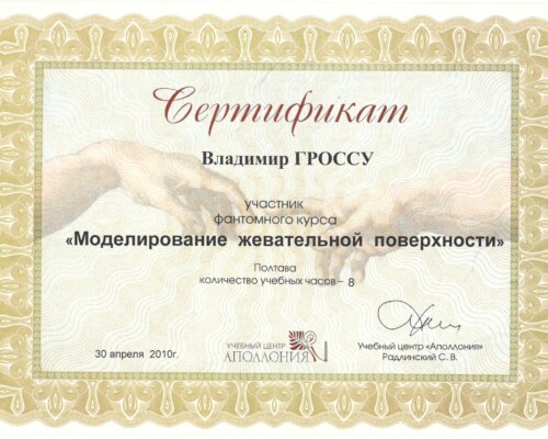- 2010 – Modelarea suprafețelor ocluzale – (8 ore)