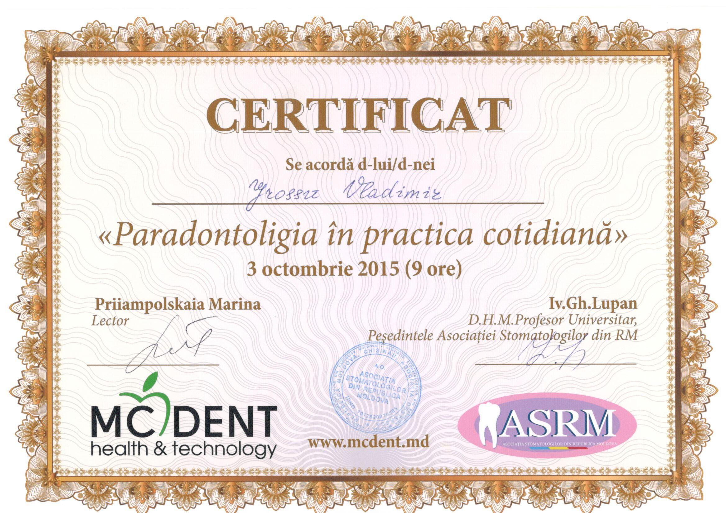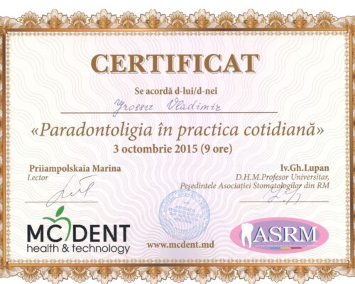- 2015 – Parodontologia în practică cotidiană – (9 ore)