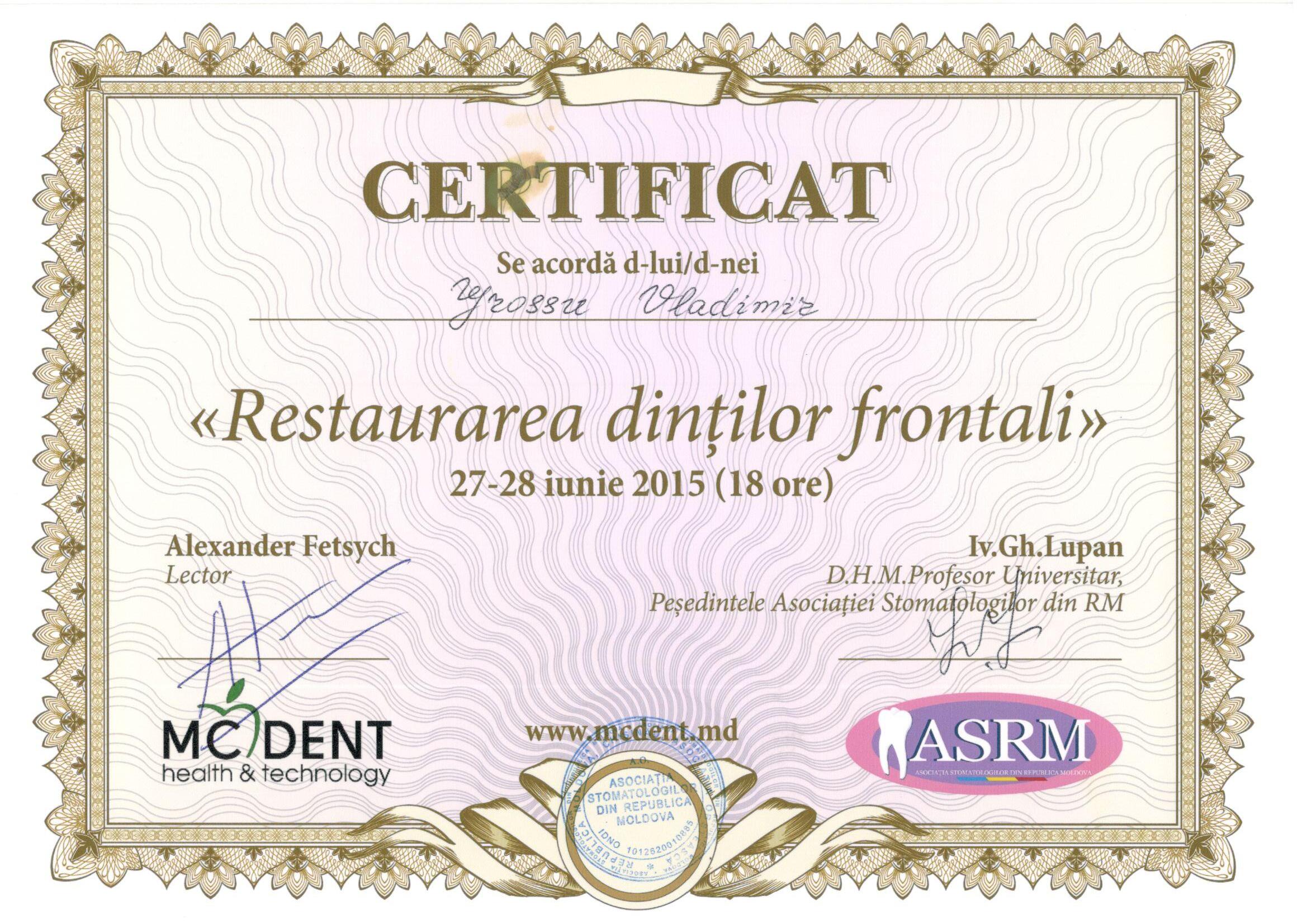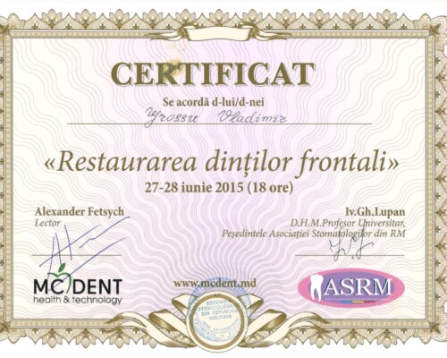 - 2015 – Restaurarea dinților frontali – (18 ore)