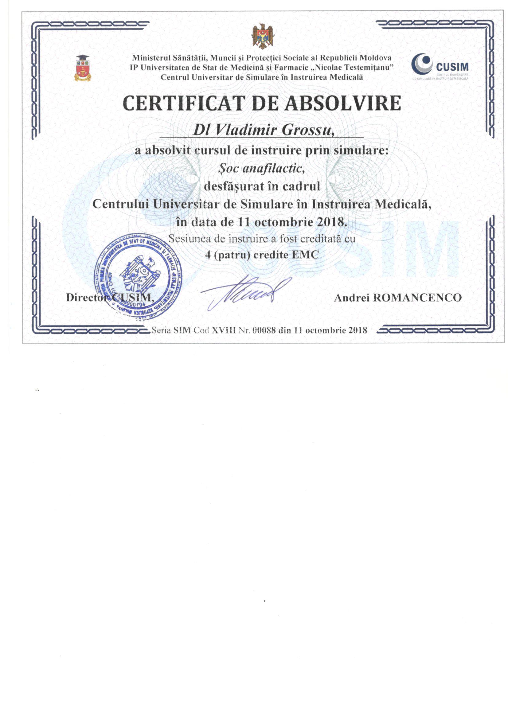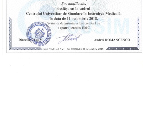 - 2018 – Curs de instruire prin simulare- șoc anafilactic