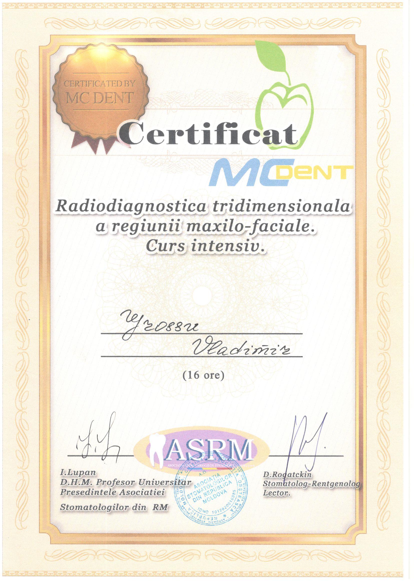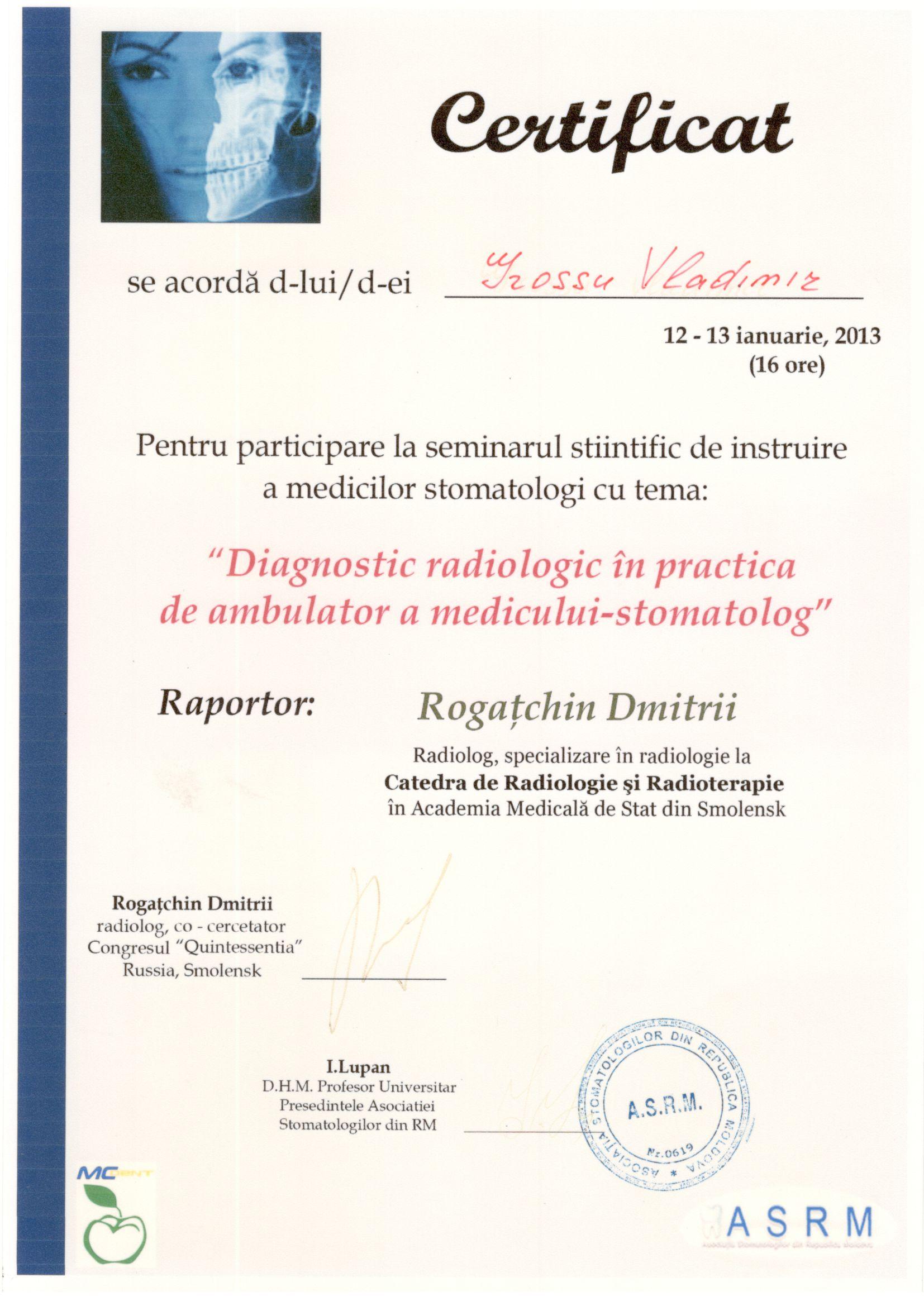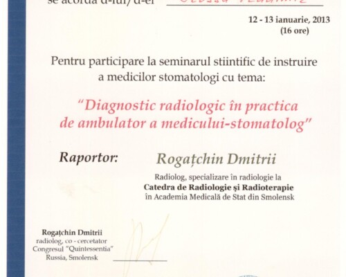 - 2013 – Diagnosticarea radiologică în practica de ambulator a medicului stomatolog – (16 ore)