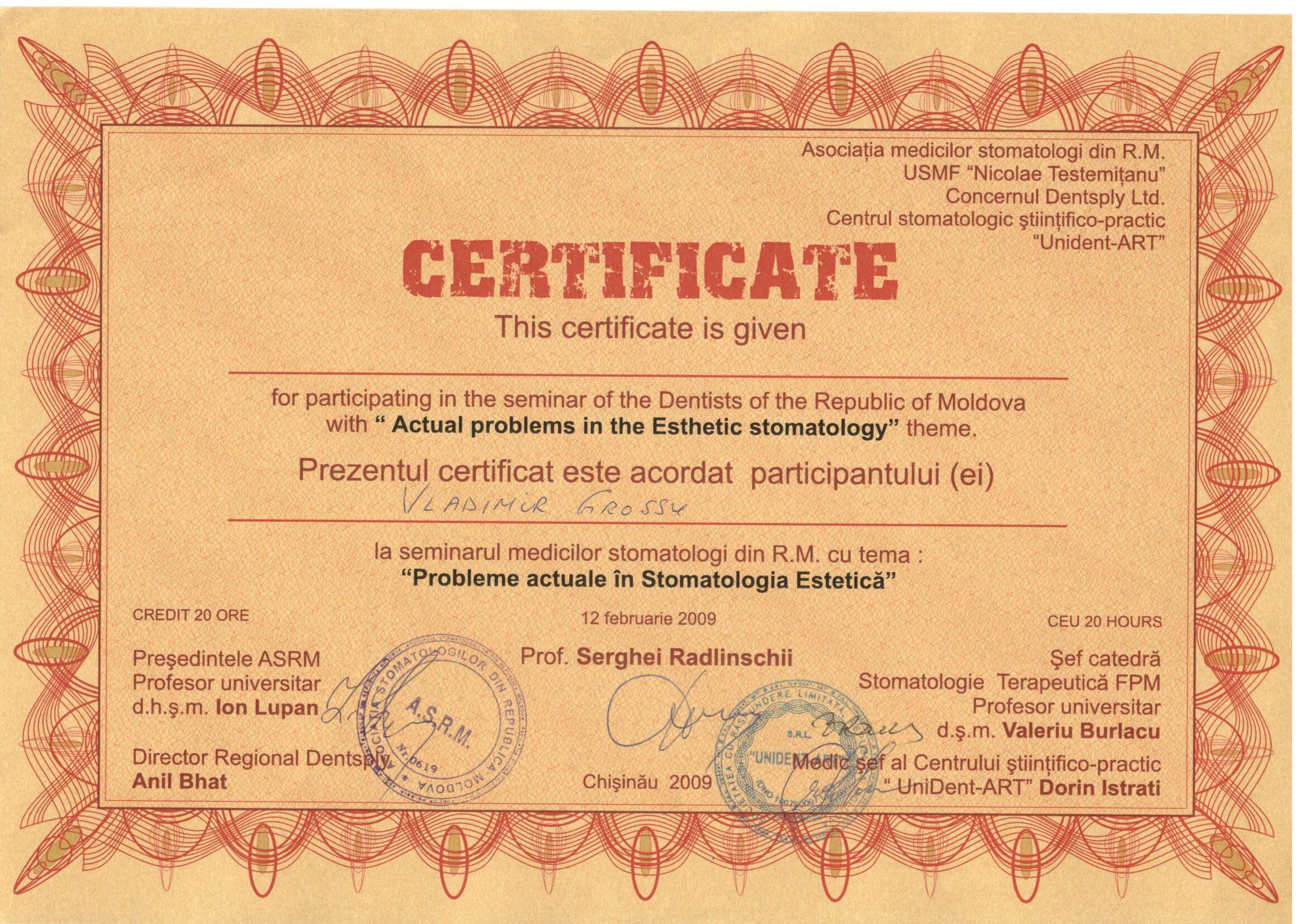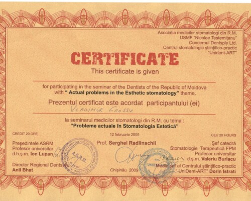 - 2009 – Actual problems in the Esthetic stomatology – (20 ore)