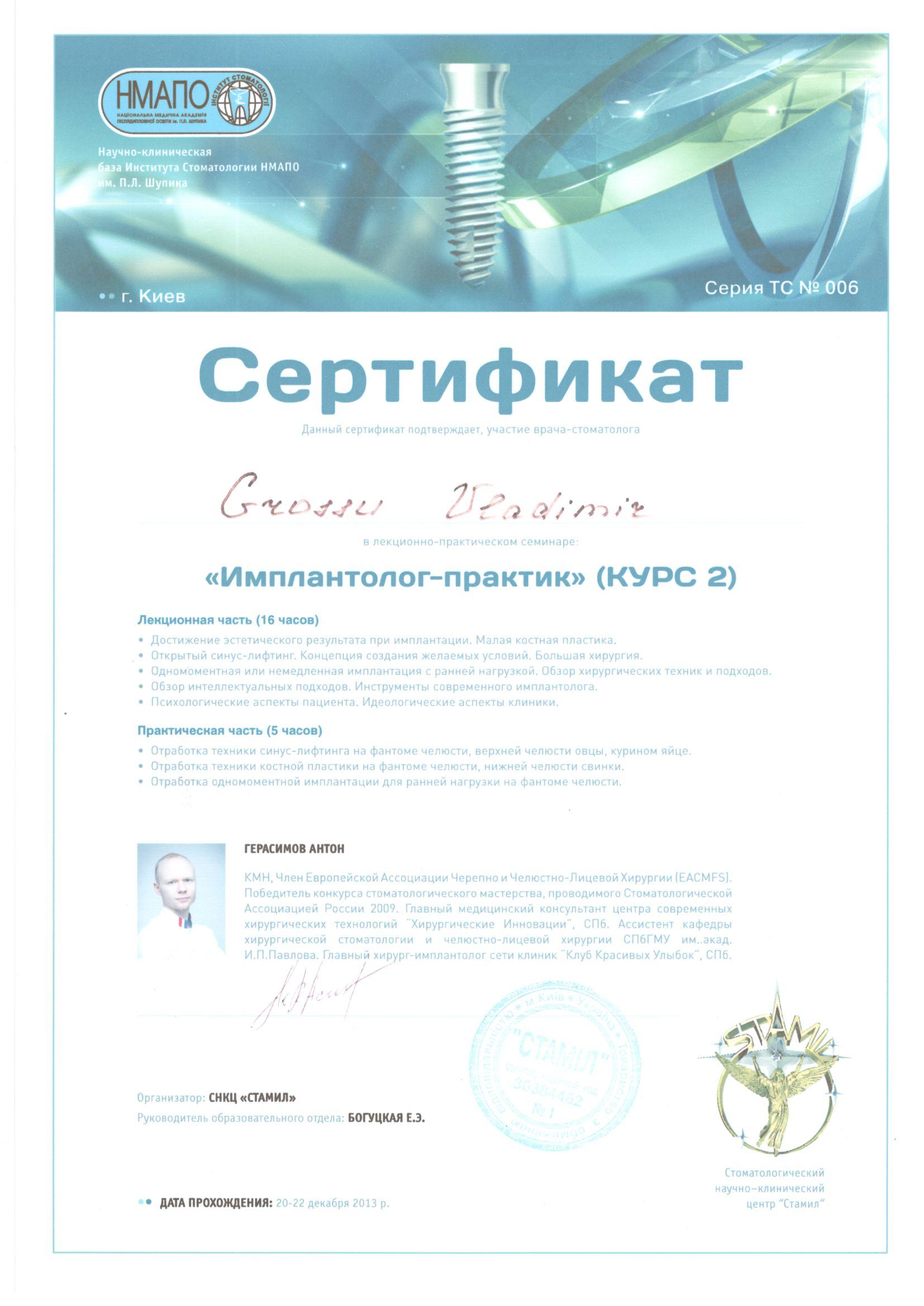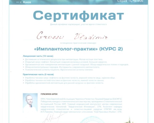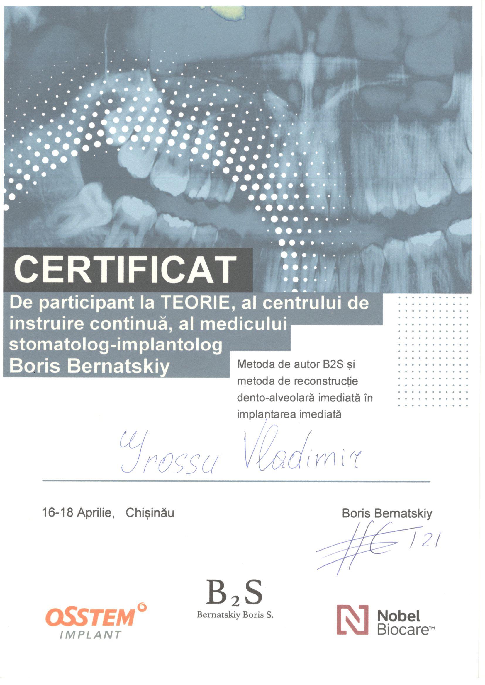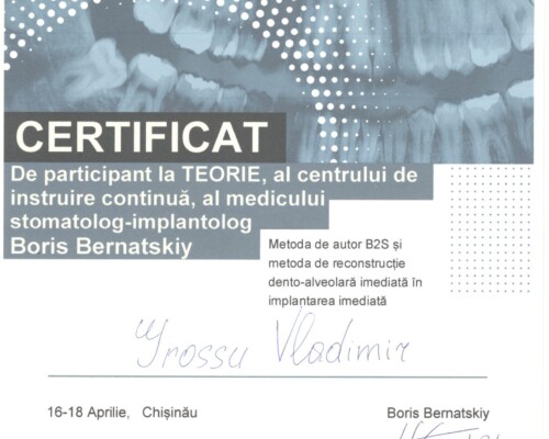 - Curs Teoretic de instruire continuă al medicului stomatolog-implantolog Boris Bernatskiy.