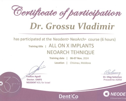 - 2024 – ALL ON X IMPLANTS NEOARCH TEHNIQUE