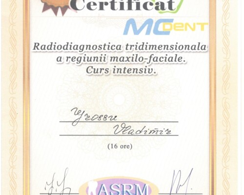 - 2016 – Diagnostica tri-dimensională a regiunii maxilo-faciale – (19 ore)
