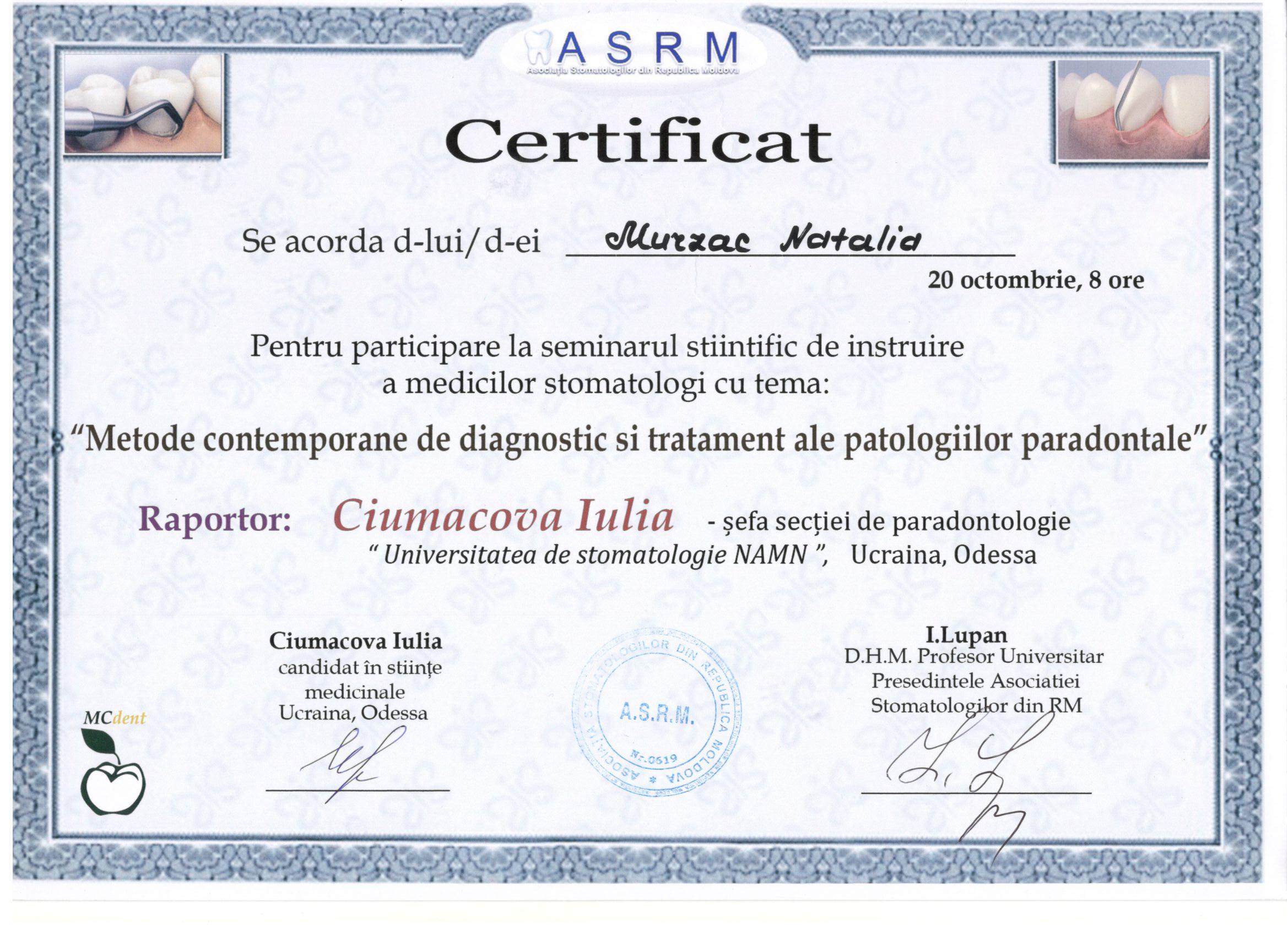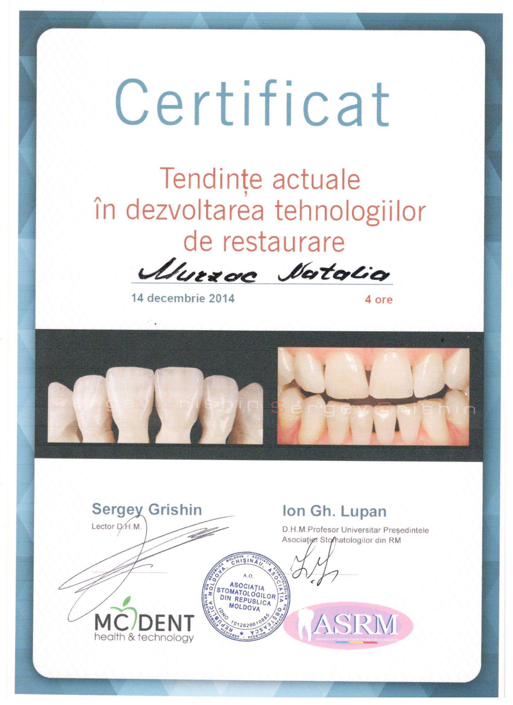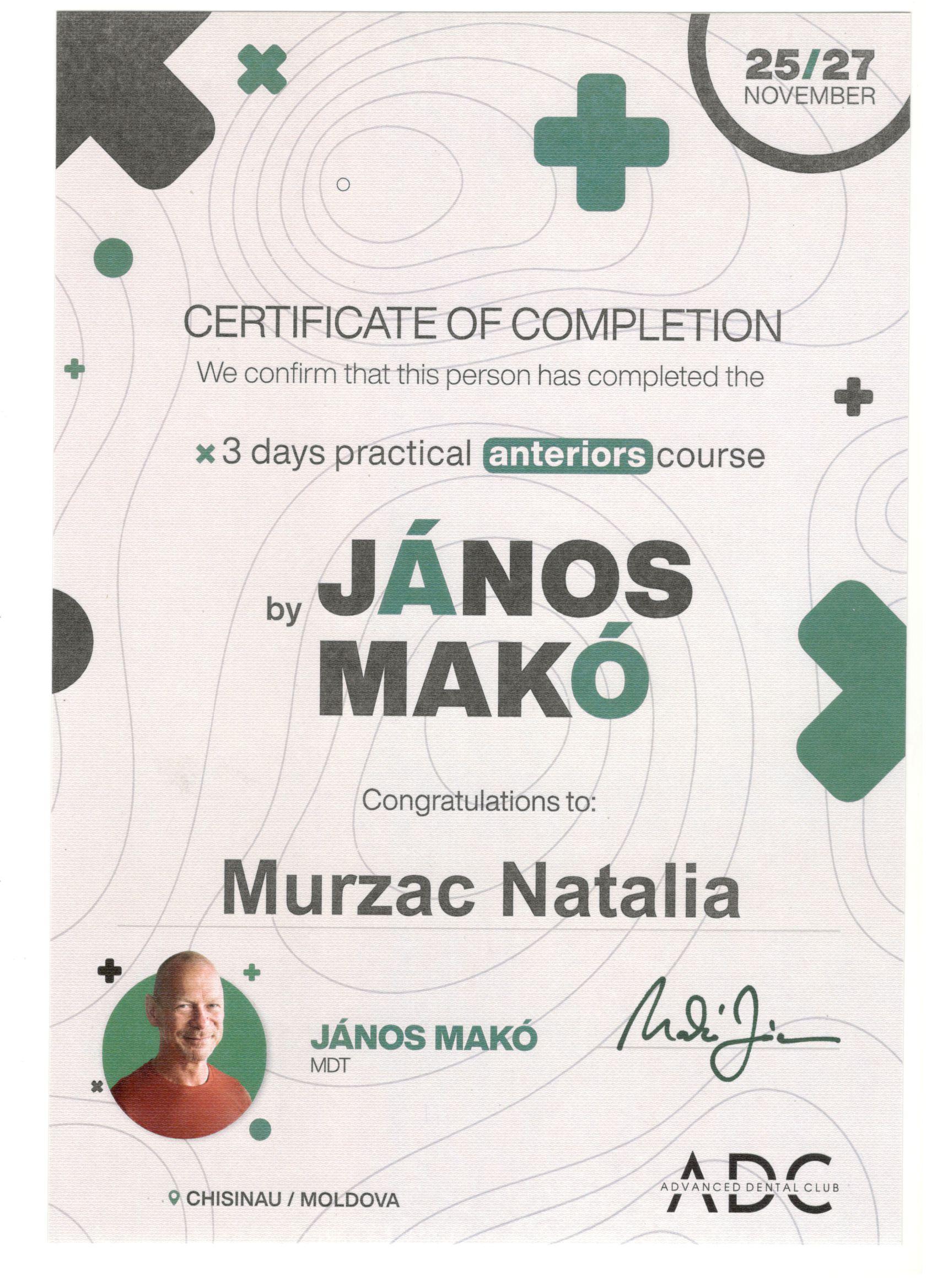 - 2015 – Restaurarea dinților frontali și latrerali – (9 ore)