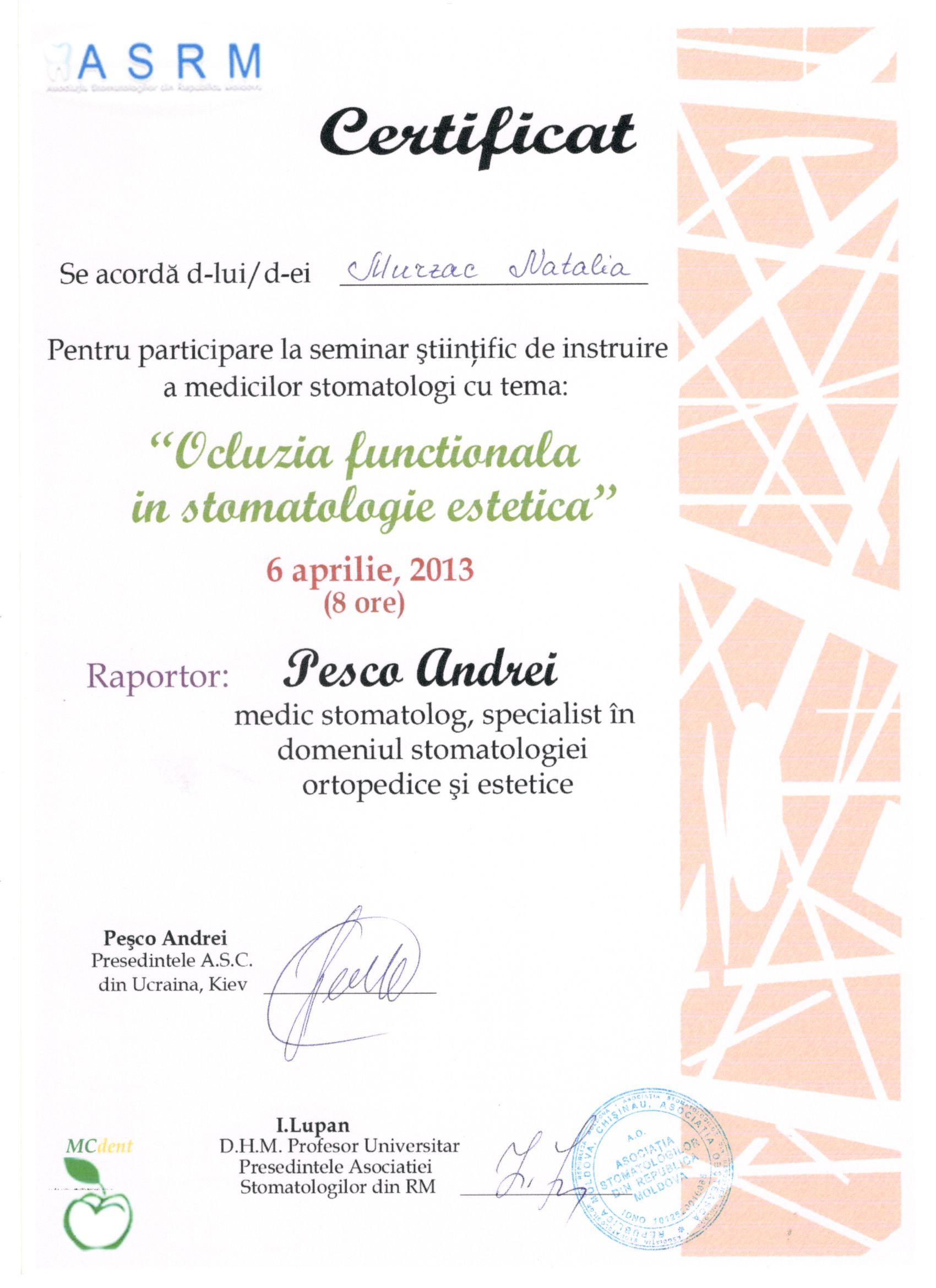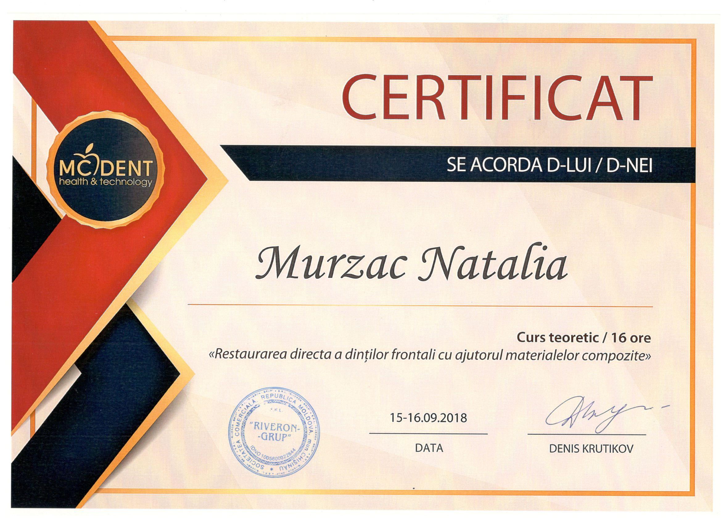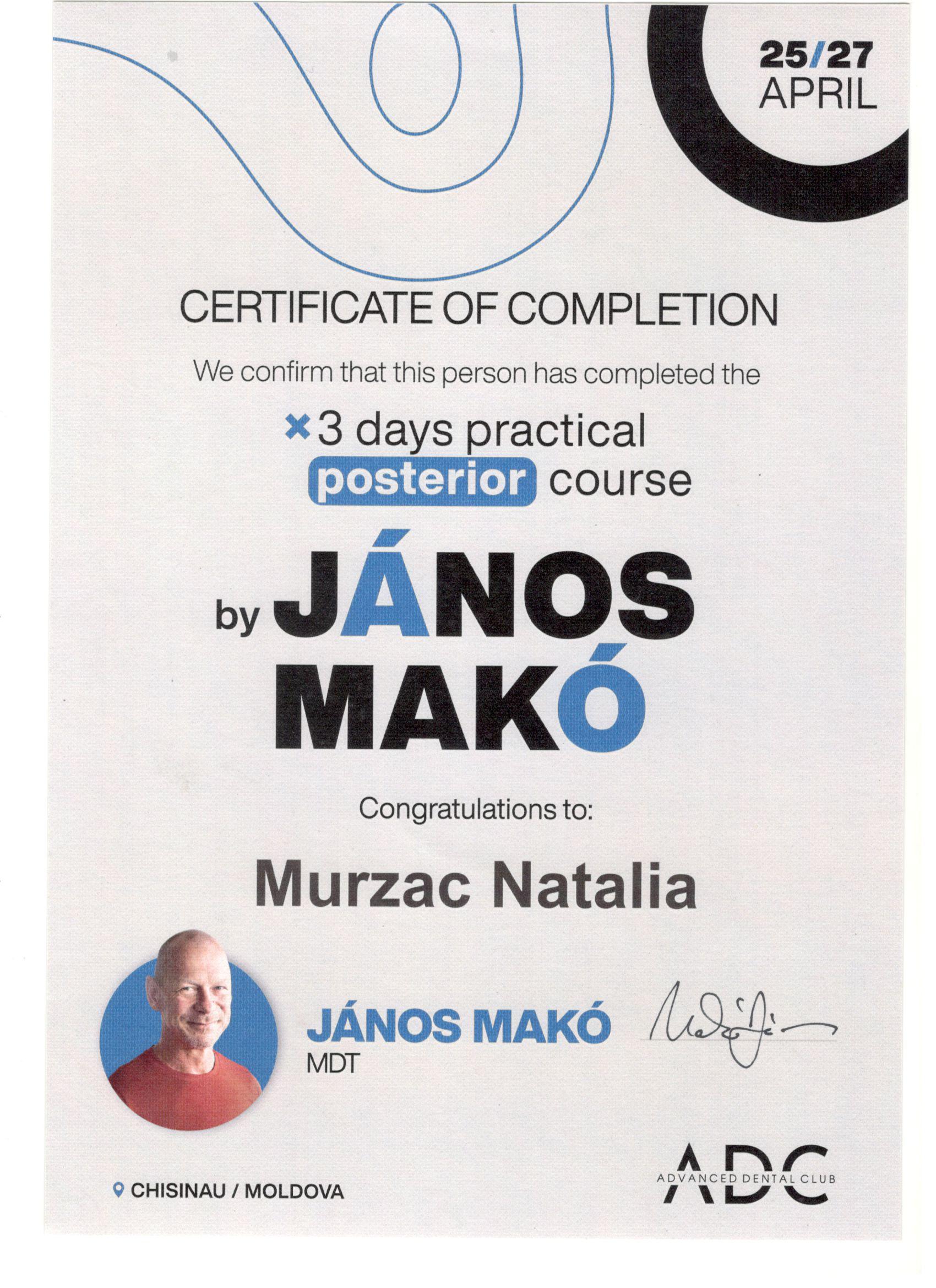 - 2015 – Restaurarea dinților frontali și latrerali – (9 ore)
