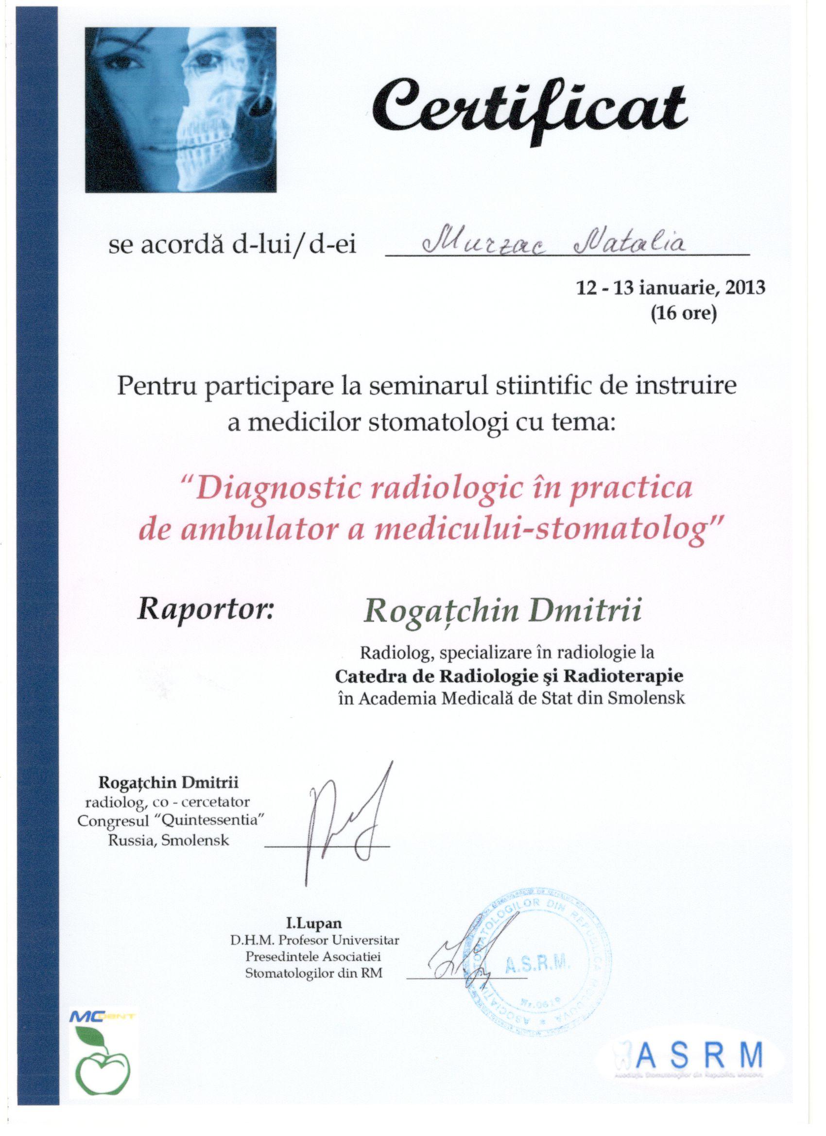 - 2013 – Diagnostic radiologic în practica de ambulator a medicului-stomatolog