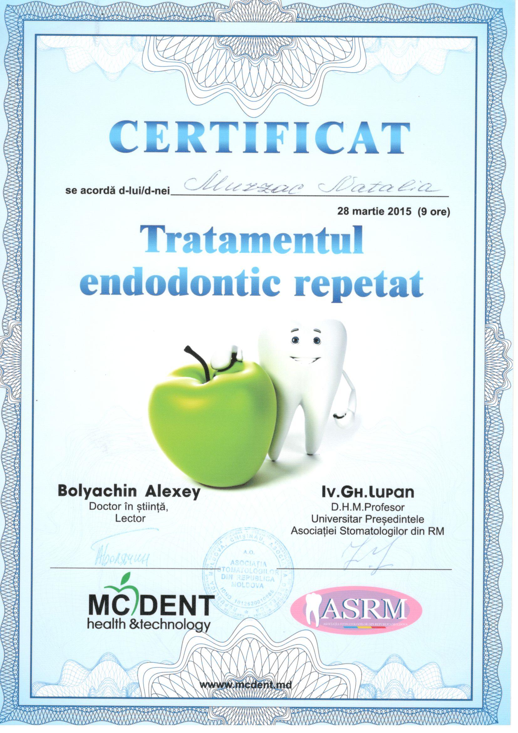 - 2015 – Tratamentul endodontic repetat – (99 ore)