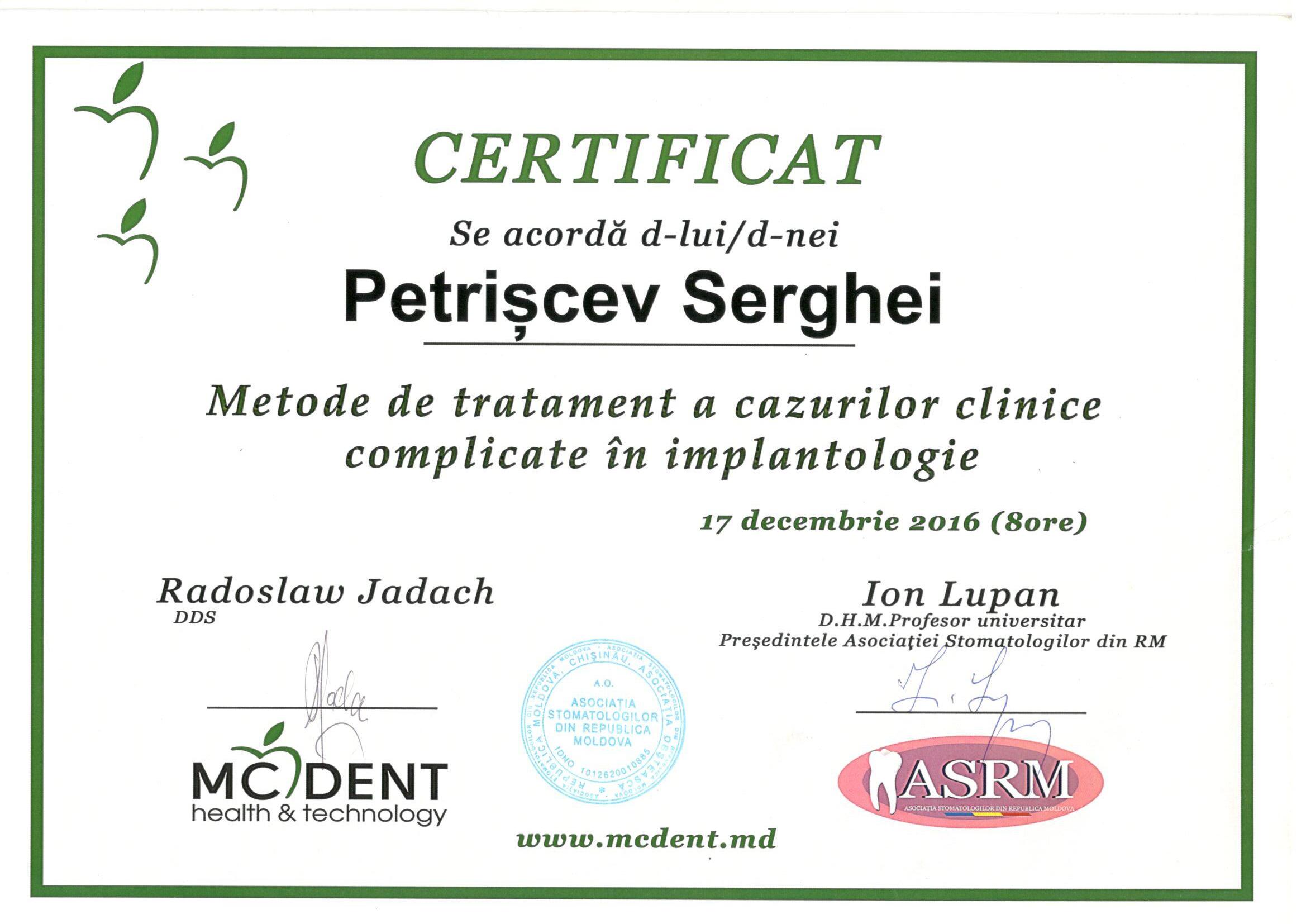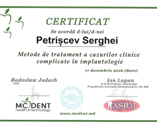 - 2016 – Metode de tratament a cazurilor clinice complicate în implantologie
