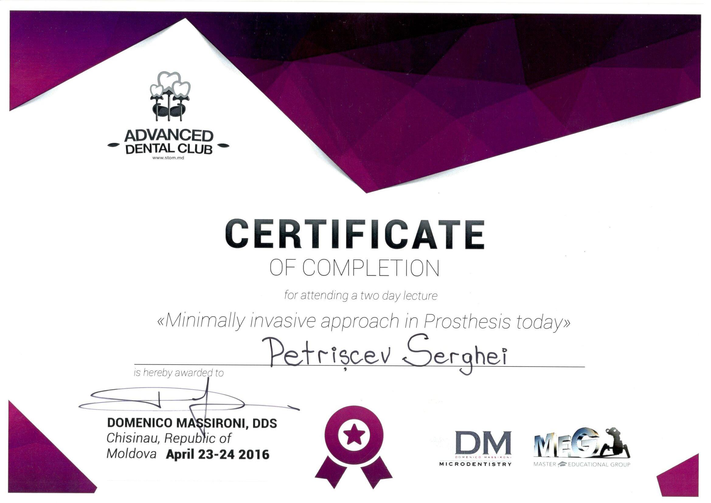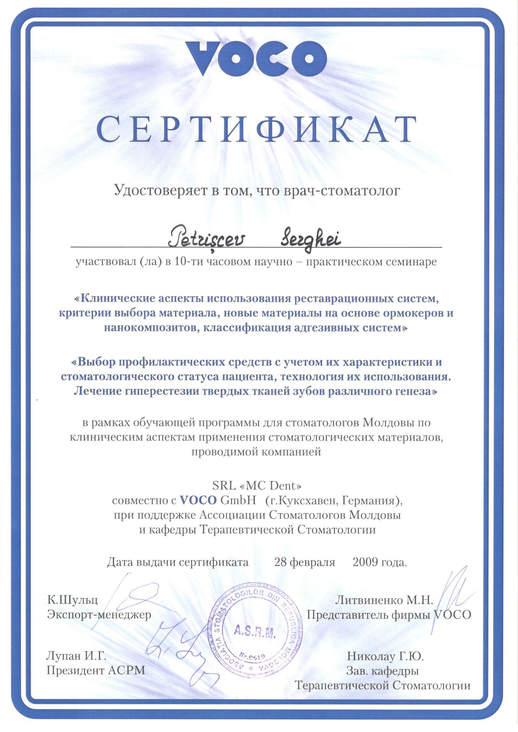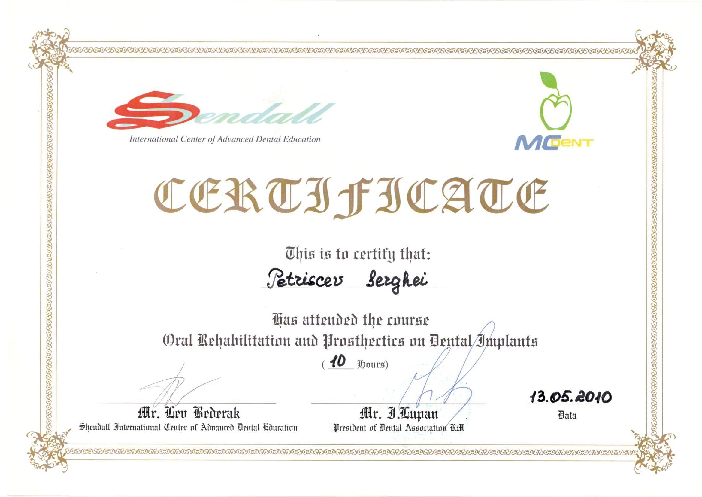 - Studii postuniversitare prin rezidențiat la specialitatea – Medic stomatolog la Univesitatea de Medicină și Farmacie „Nicolae 2000-2003
