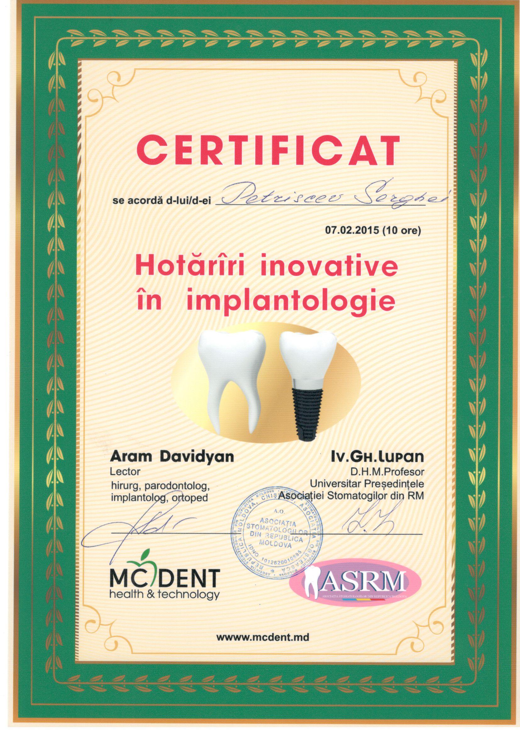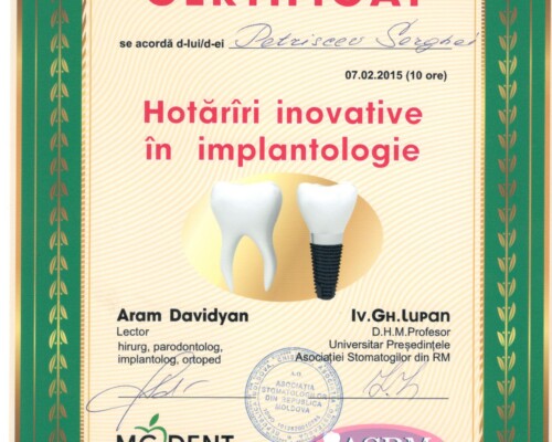 - 2015 – HOTARÎRI INOVATIVE ÎN IMPLANTOLOGIE