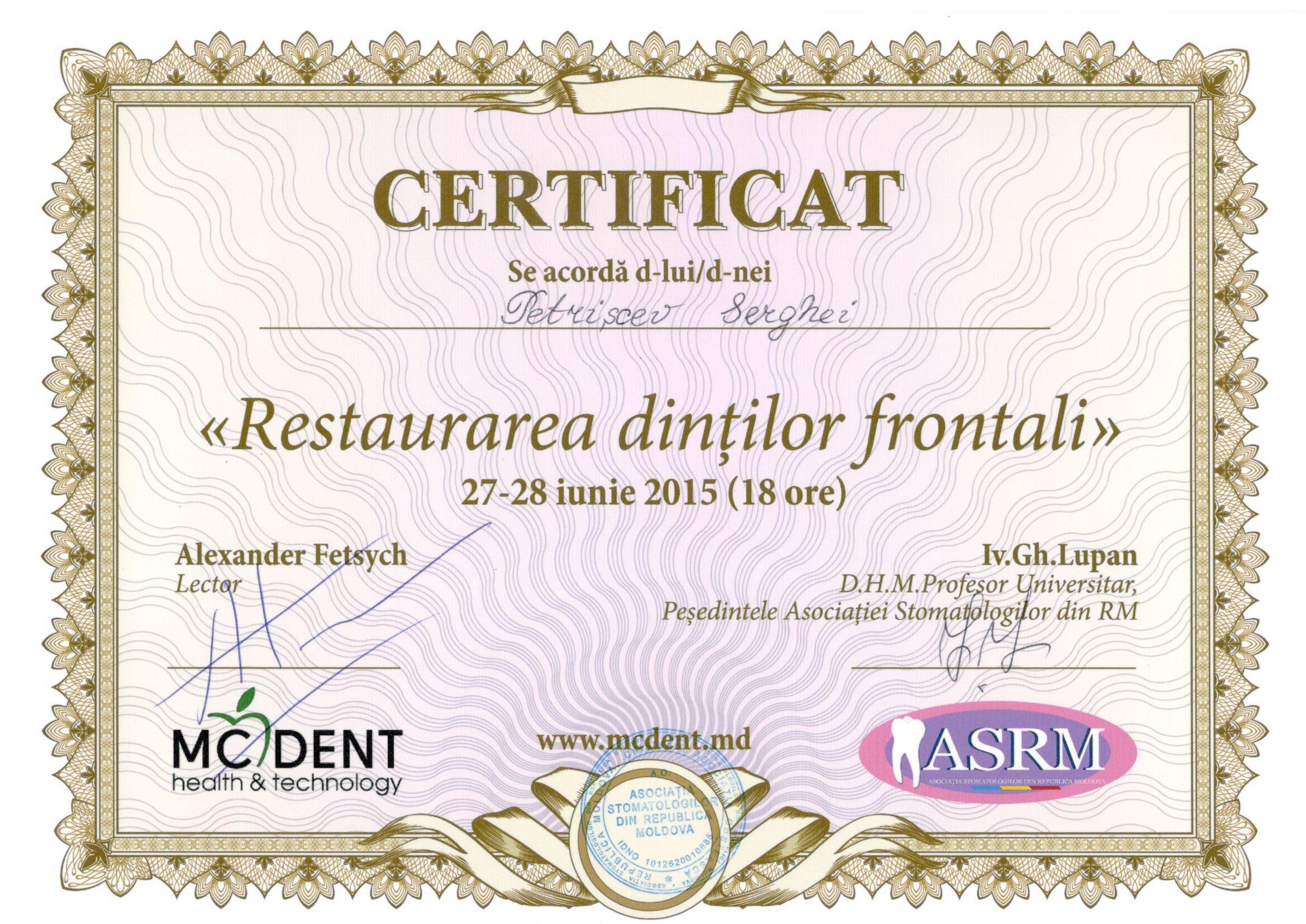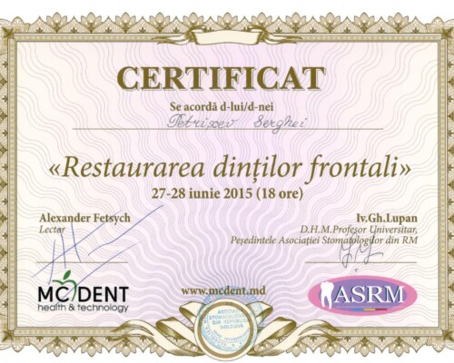 - 2015 – RESTAURAREA DINȚILOR FRONTALI