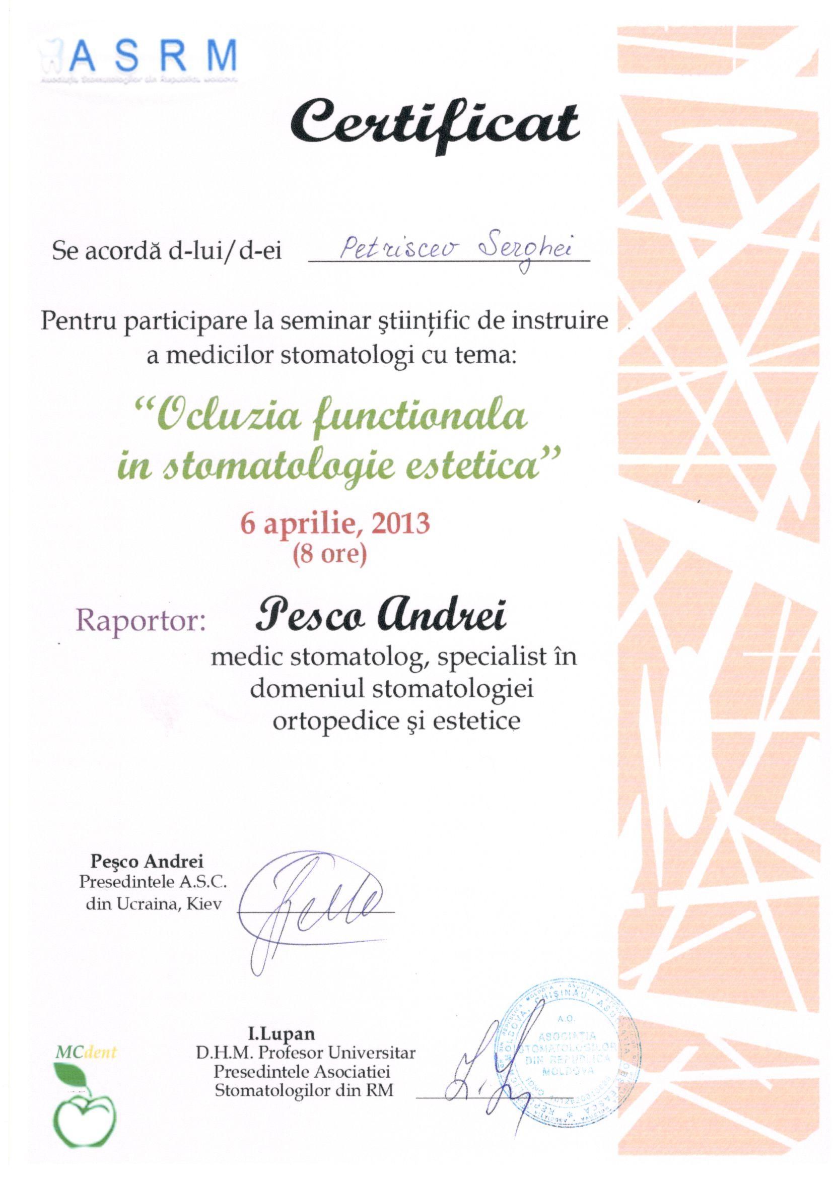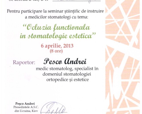 - 2013 – OCLUZIA FUNCȚIONALA ÎN STOMATOLOGIA ESTETICA