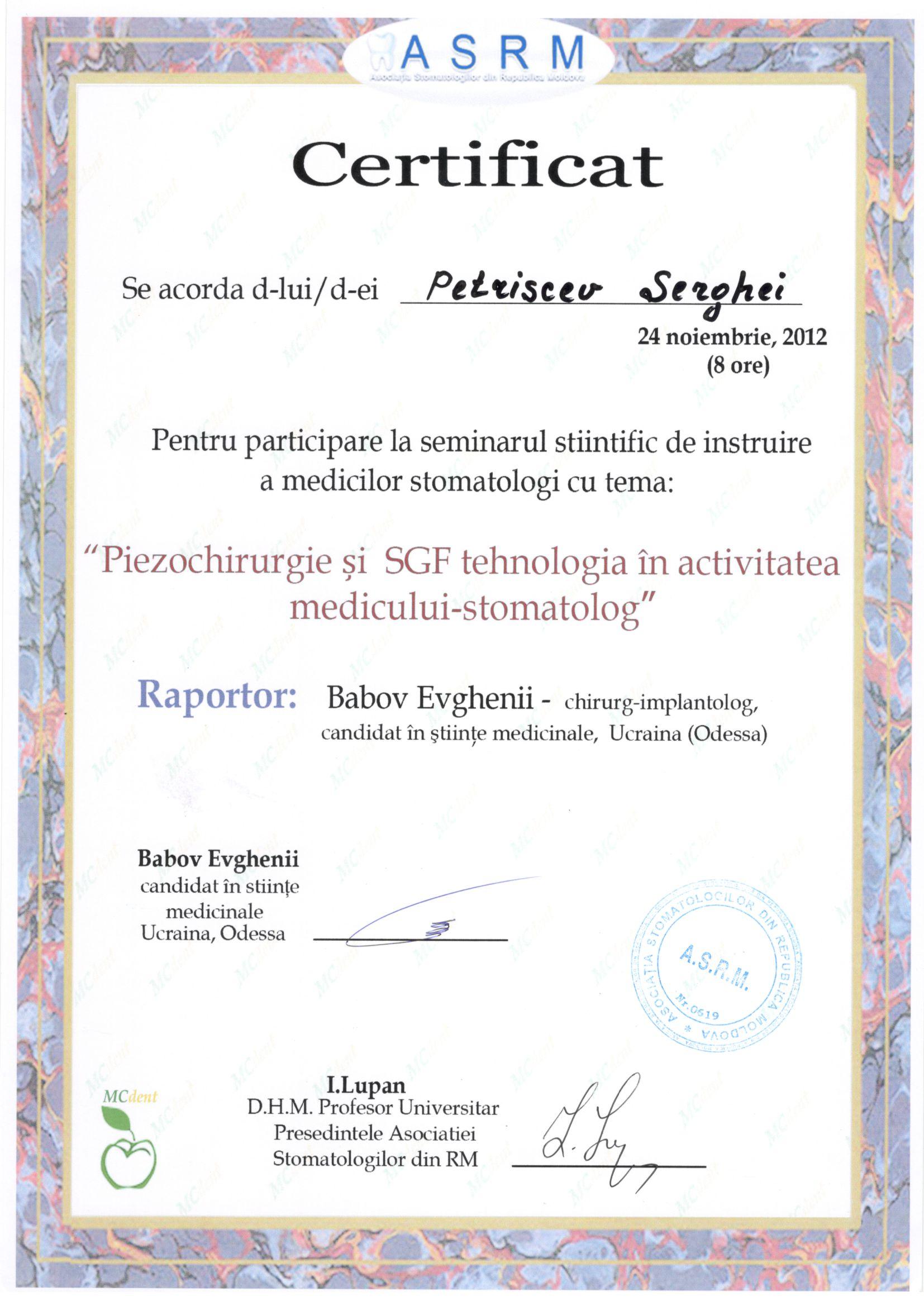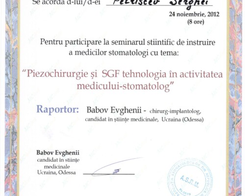 - 2012 – PIEZOCHIIRURGIE ȘI SGF-TEHNOLOGIA ÎN IMPLANTOLOGIE