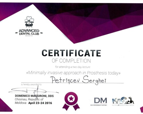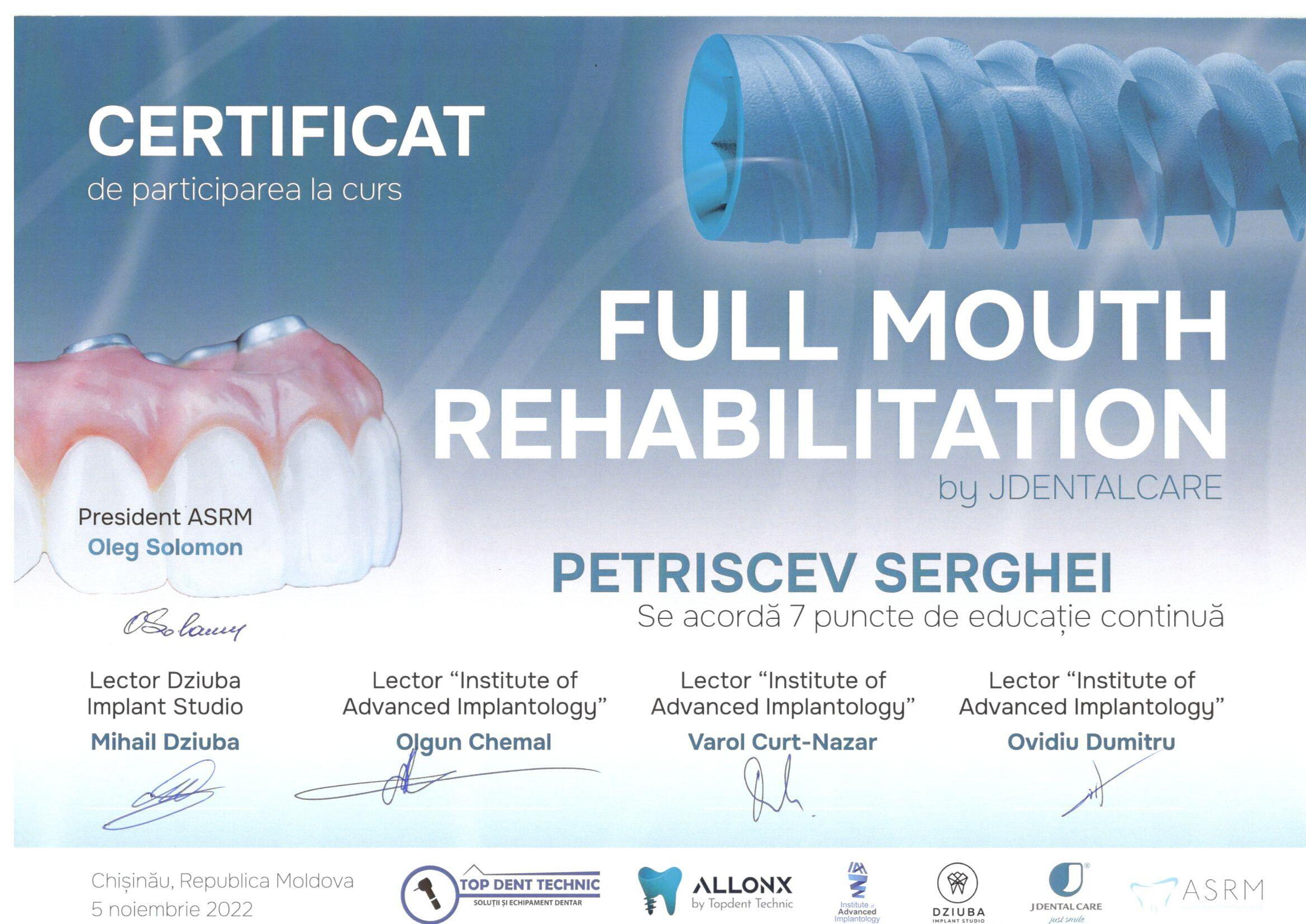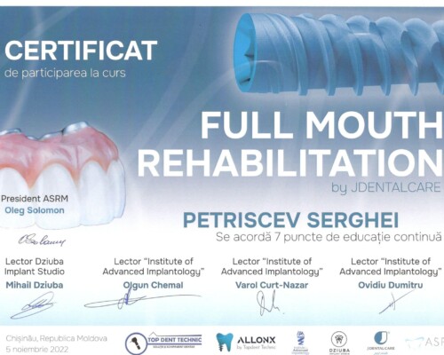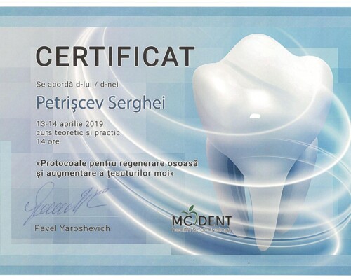 Dr. Serghei Petrișcev, medic stomatolog – chirurg, protezist, terapeut, endodont și implantolog, oferă tratamente stomatologice complexe, acoperind întreaga gamă de servicii – de la terapie dentară și endodonție modernă, până la intervenții chirurgicale, implantologie și reabilitări protetice complete. Abordează fiecare caz printr-o evaluare detaliată și un plan de tratament interdisciplinar, orientat spre restabilirea funcționalității, esteticii și sănătății orale pe termen lung.