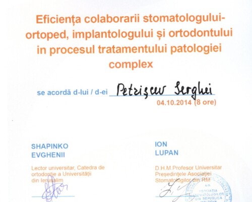 - 2014 – ORTOPED , IMPLANTOLOGUL ȘI ORTODONT ÎN PROCES TRATAMENTULUI COMPLEX