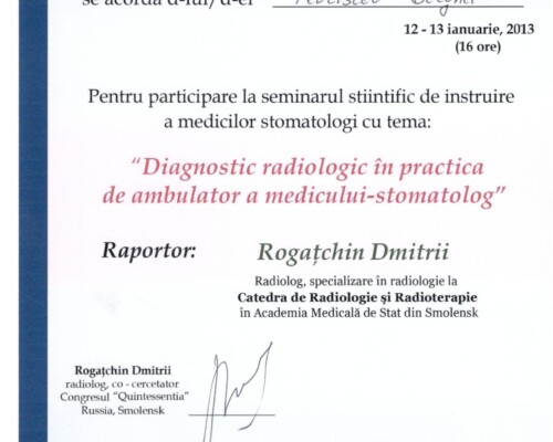 - 2016 – Diagnostica tri-dimensională a regiunii maxilo-faciale