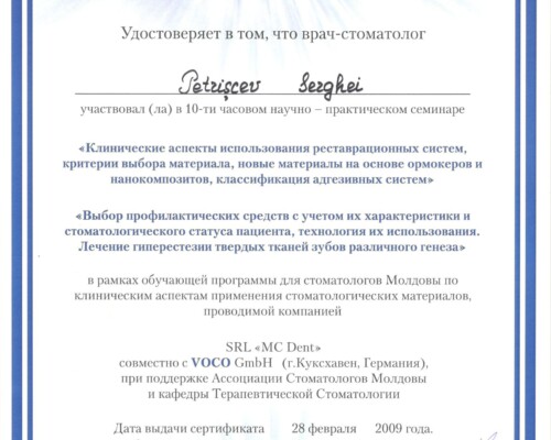 - 2009 – КЛИНИЧЕСКИЕ АСПЕКТЫ ИСПОЛЬЗОВАНИЯ ОРМОКЕРОВ И НАНОКОМПОЗИТОВ