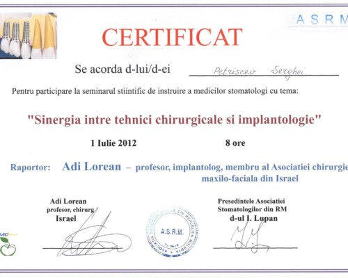 - 2012 – SINERGIA INTRE TEHNICI CHIRURGICALE ȘI IMPLANTOLOGIE