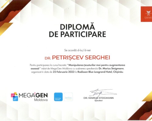 - 2023 – Manipularea țesuturilor moi pentru augmentarea osoasă. Dr. Marius Steigmann.